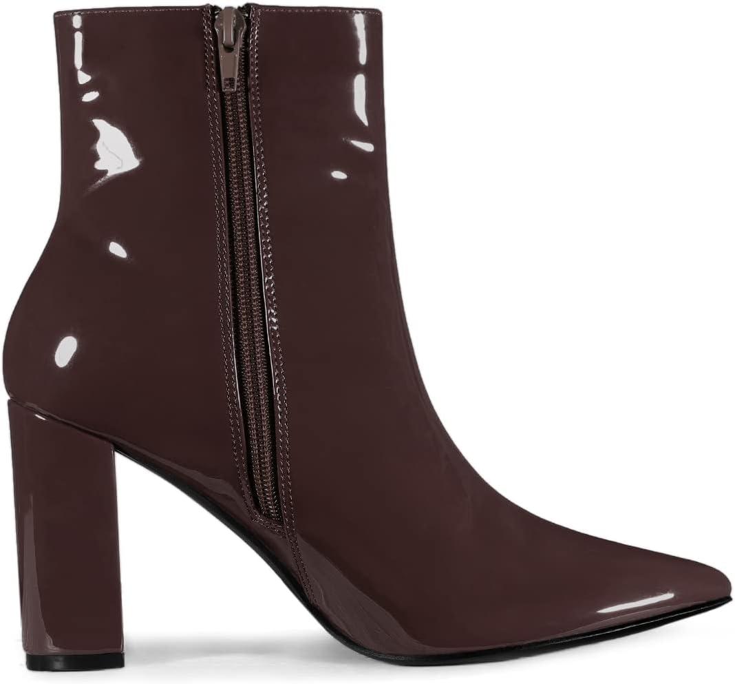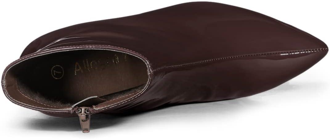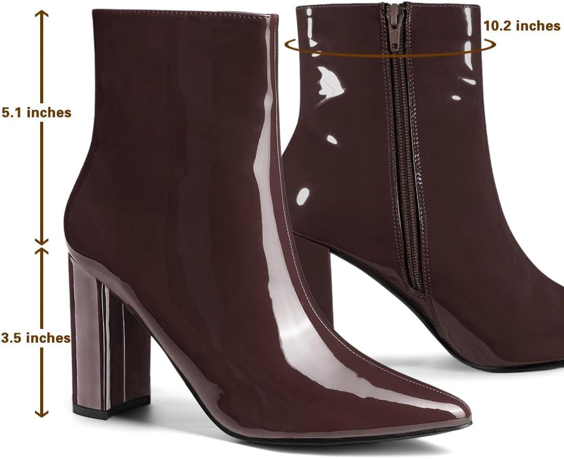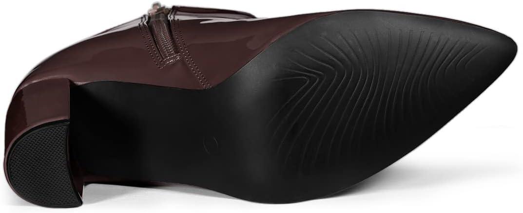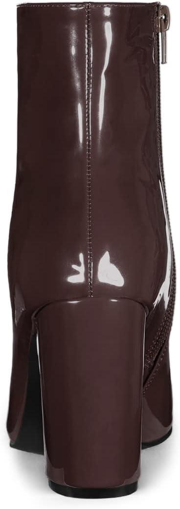 Allegra K Women’s Chunky Heel Pointed Toe Zipper Ankle Boots(Coffee)