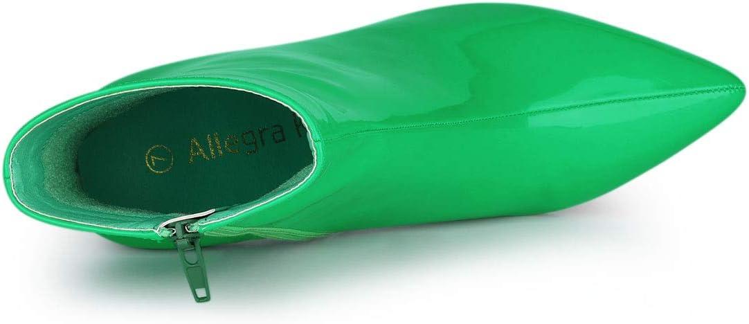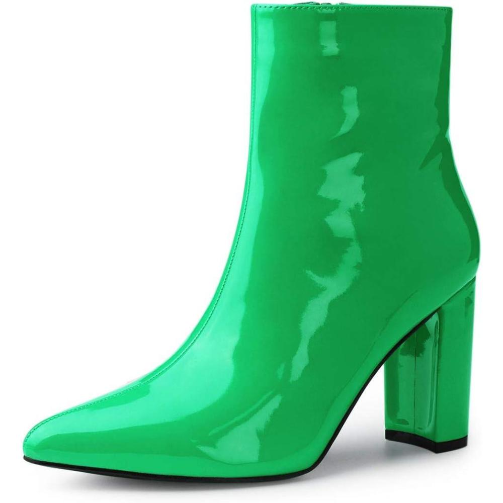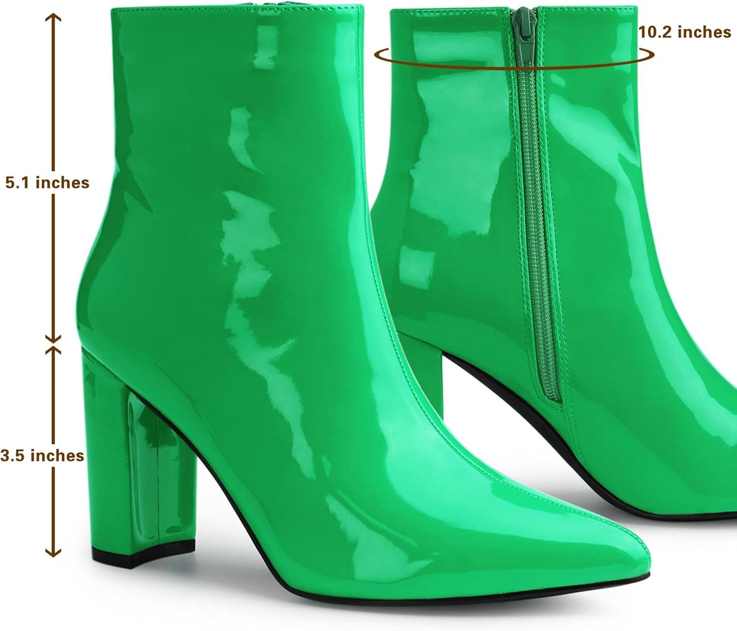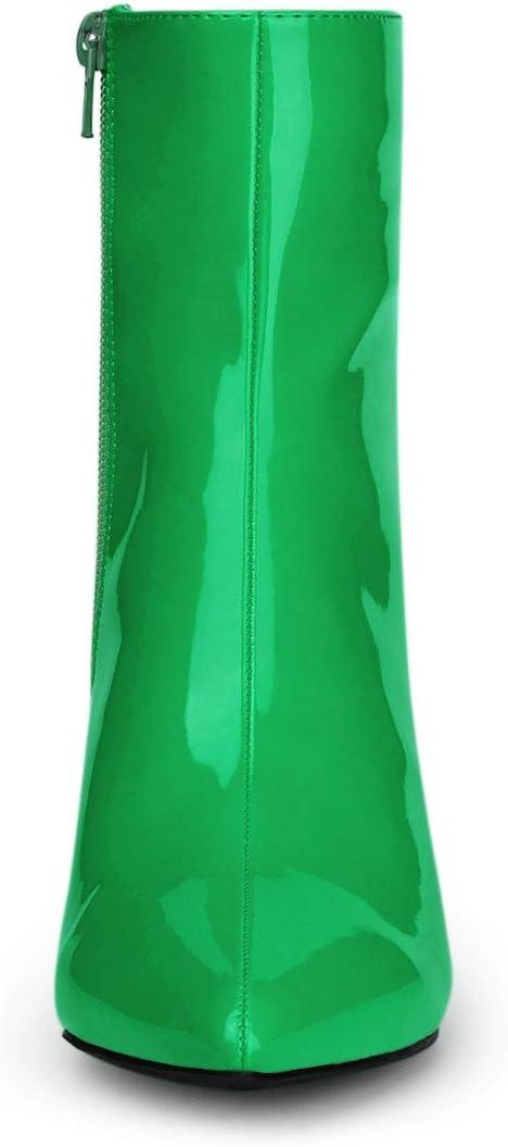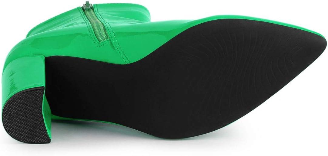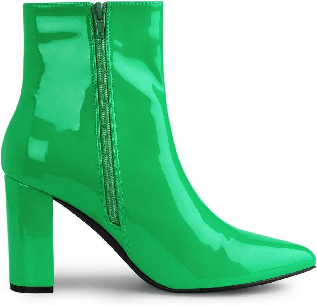 Allegra K Women’s Chunky Heel Pointed Toe Zipper Ankle Boots(Green)