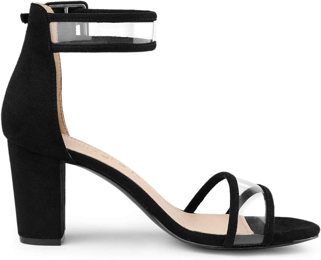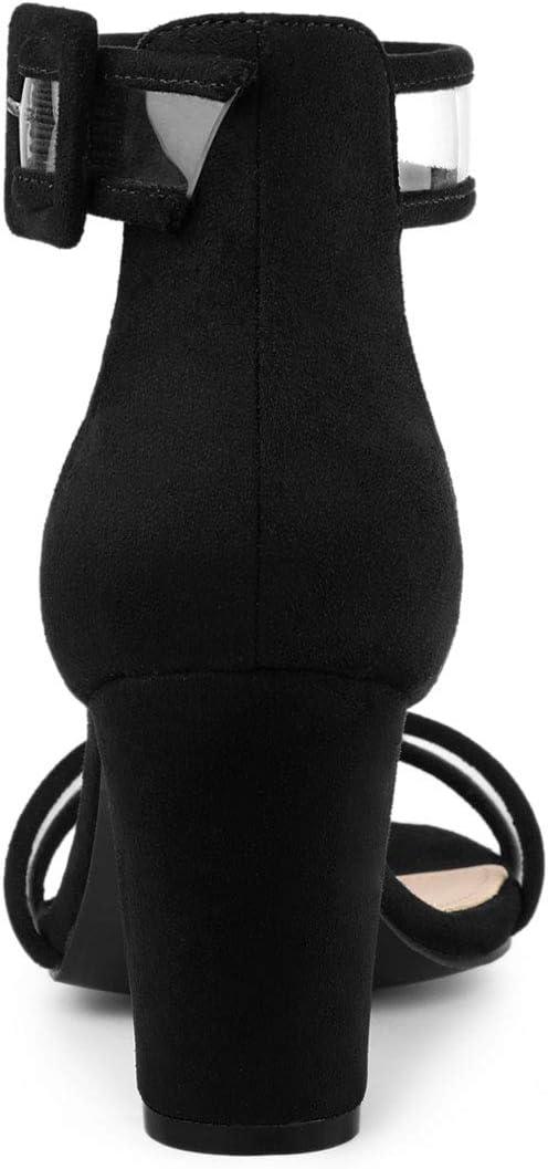 Allegra K Women’s Clear Ankle Strap Chunky Heels Sandals(Black)