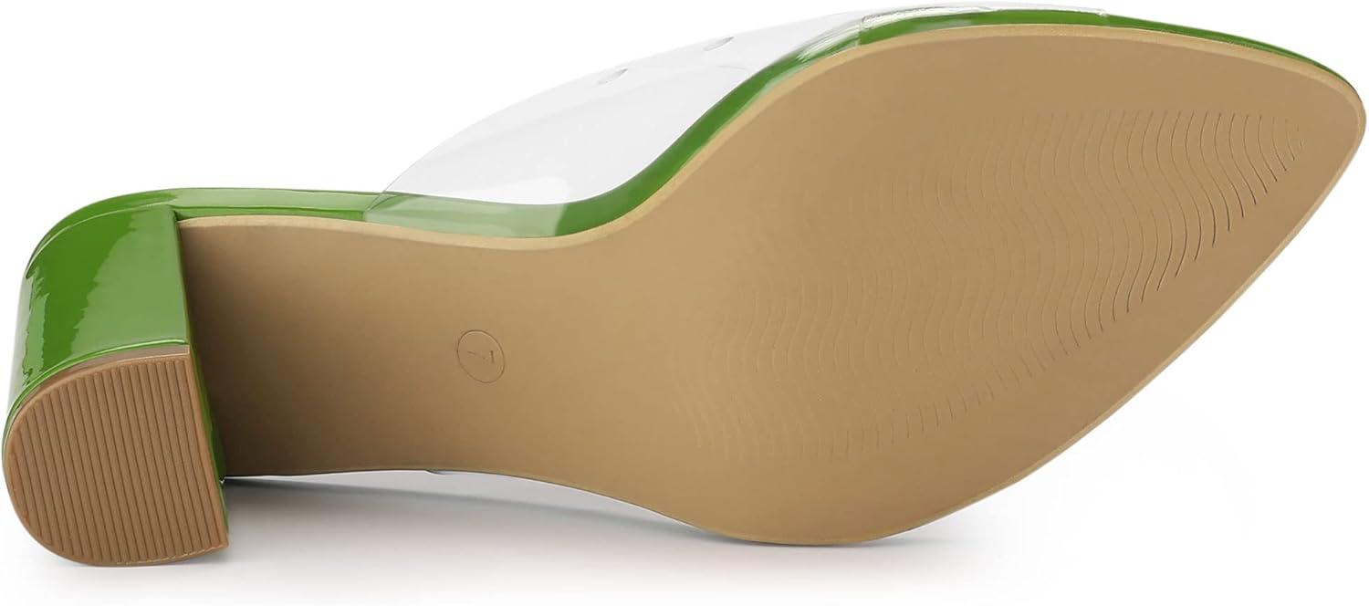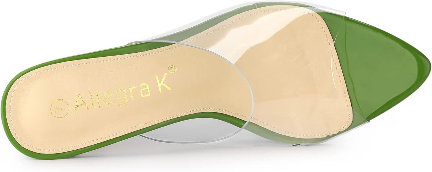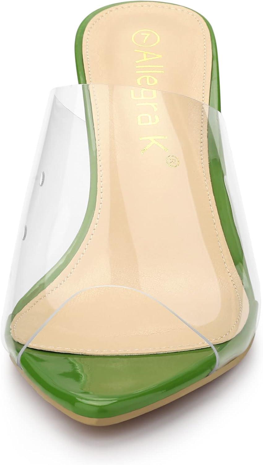 Allegra K Women’s Clear Chunky Heel Slides Sandals Mules(Green)