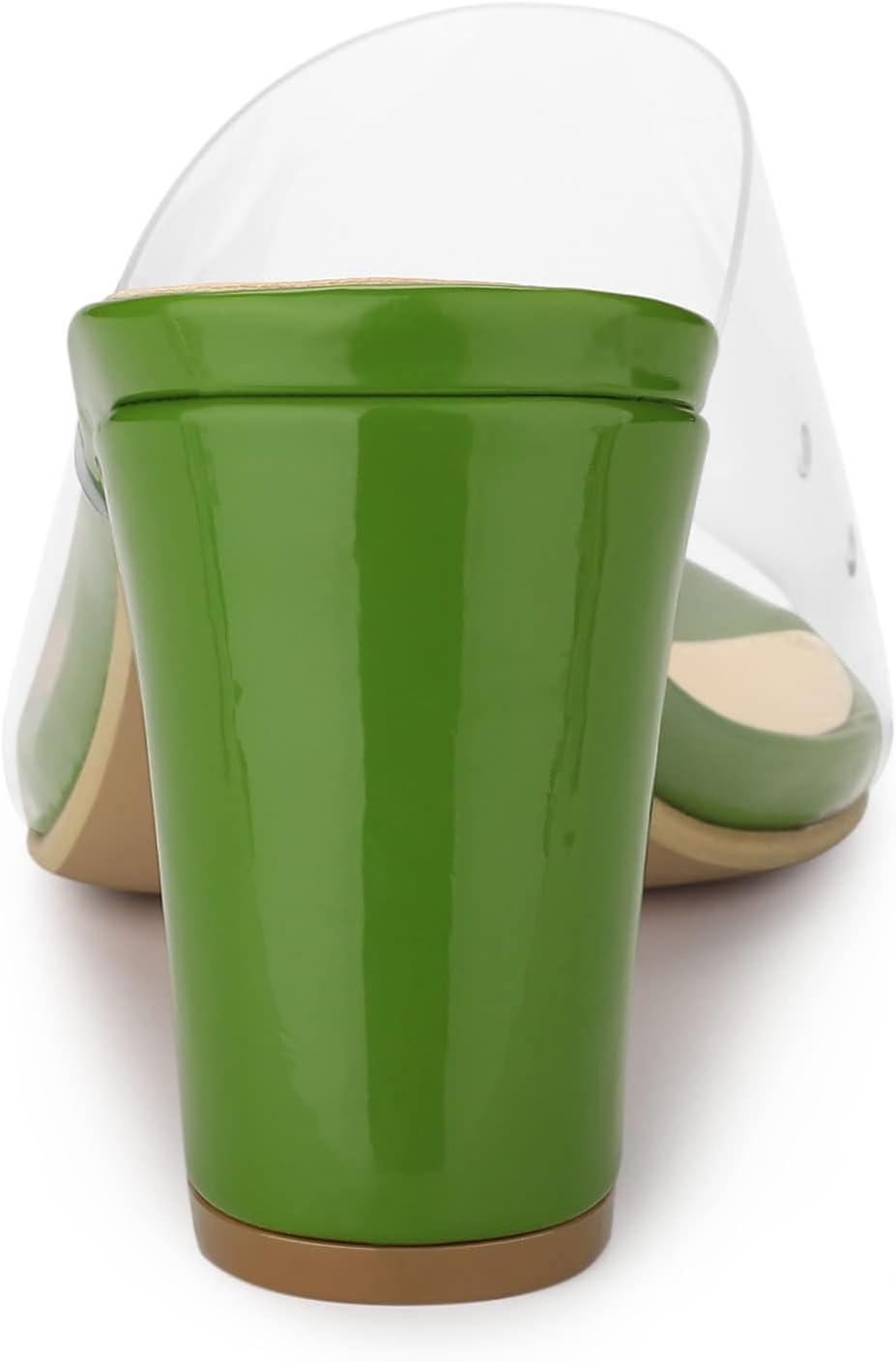 Get your hands on our exclusive Allegra K Women’s Clear Chunky Heel Slides Sandals Mules(Green) collection, now at a discounted price.