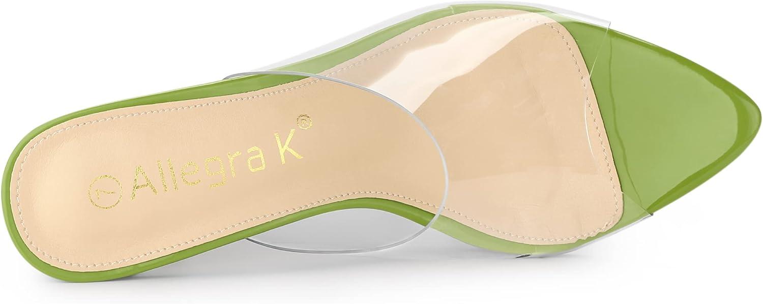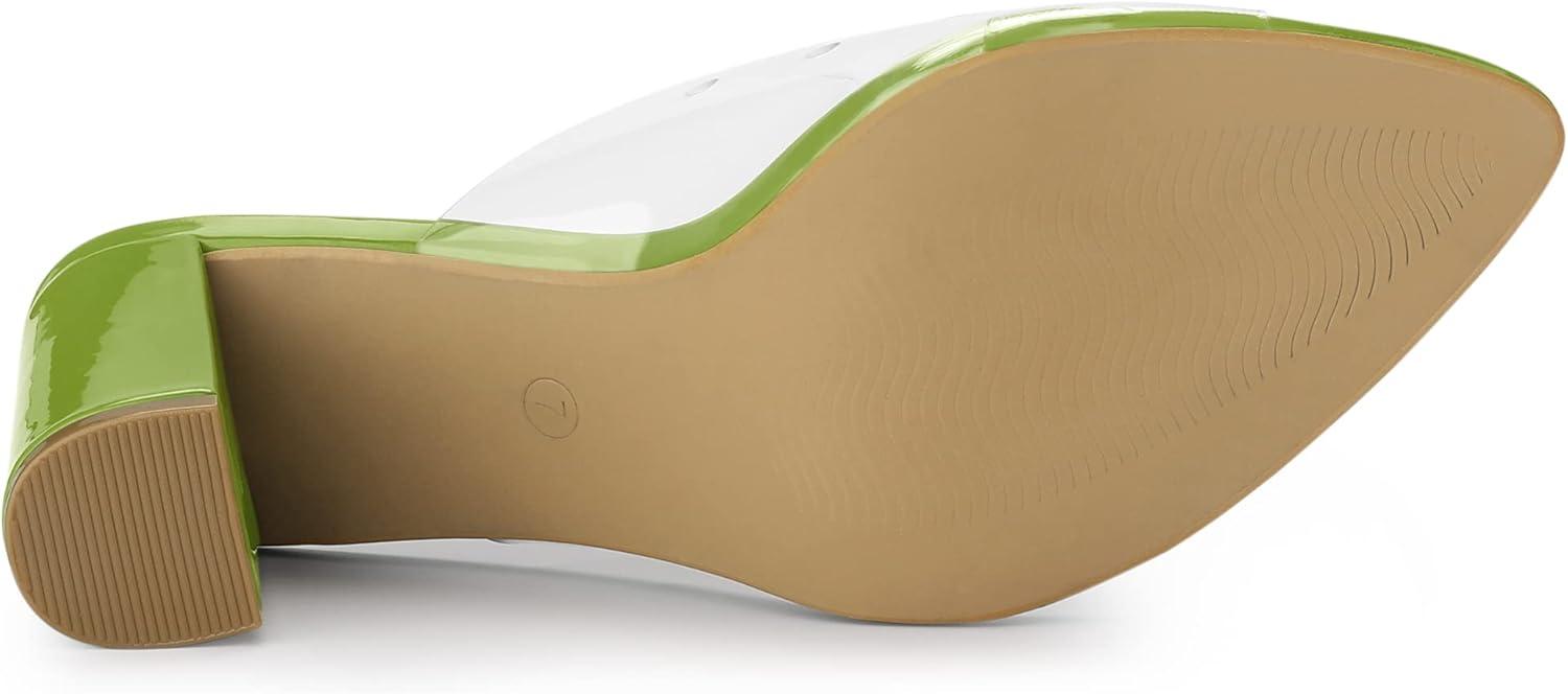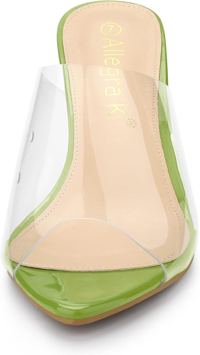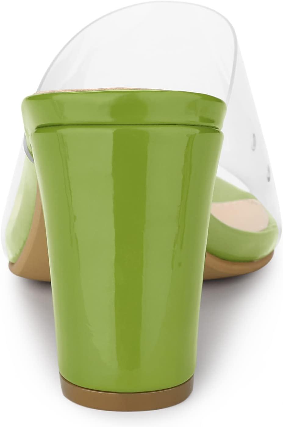 Allegra K Women’s Clear Chunky Heel Slides Sandals Mules(Light Green)