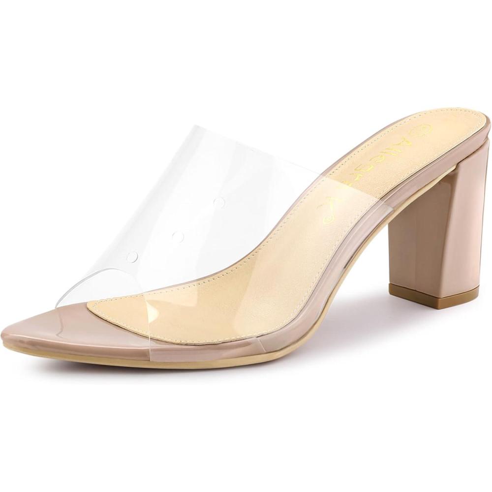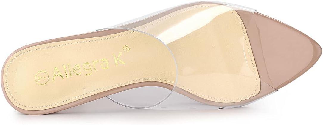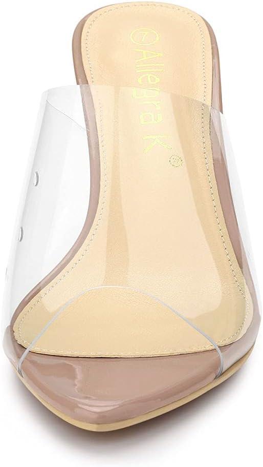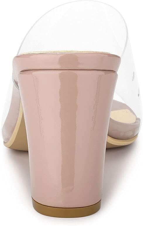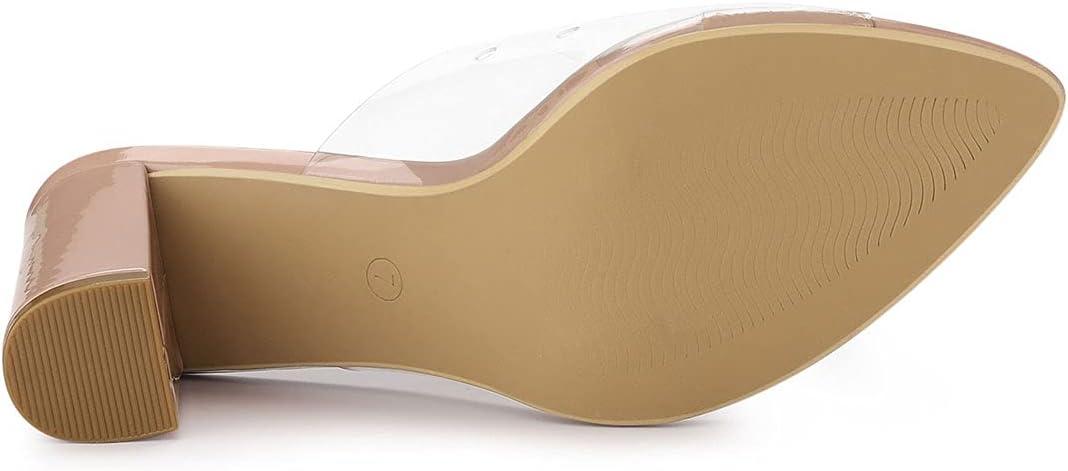Allegra K Women’s Clear Chunky Heel Slides Sandals Mules(Nude)