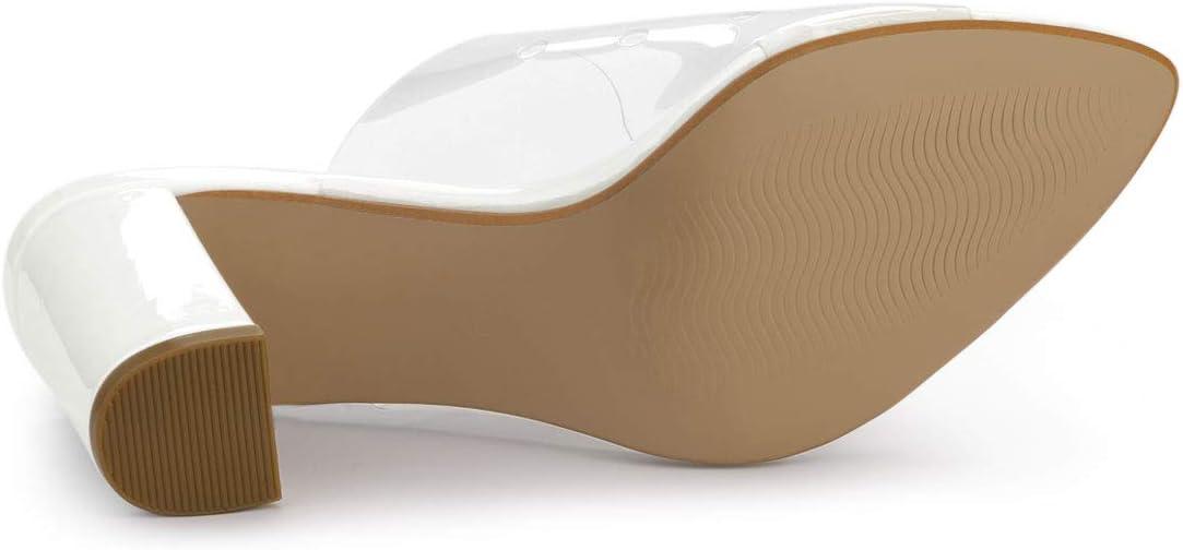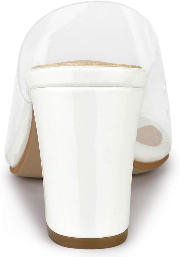 Allegra K Women’s Clear Chunky Heel Slides Sandals Mules(White)