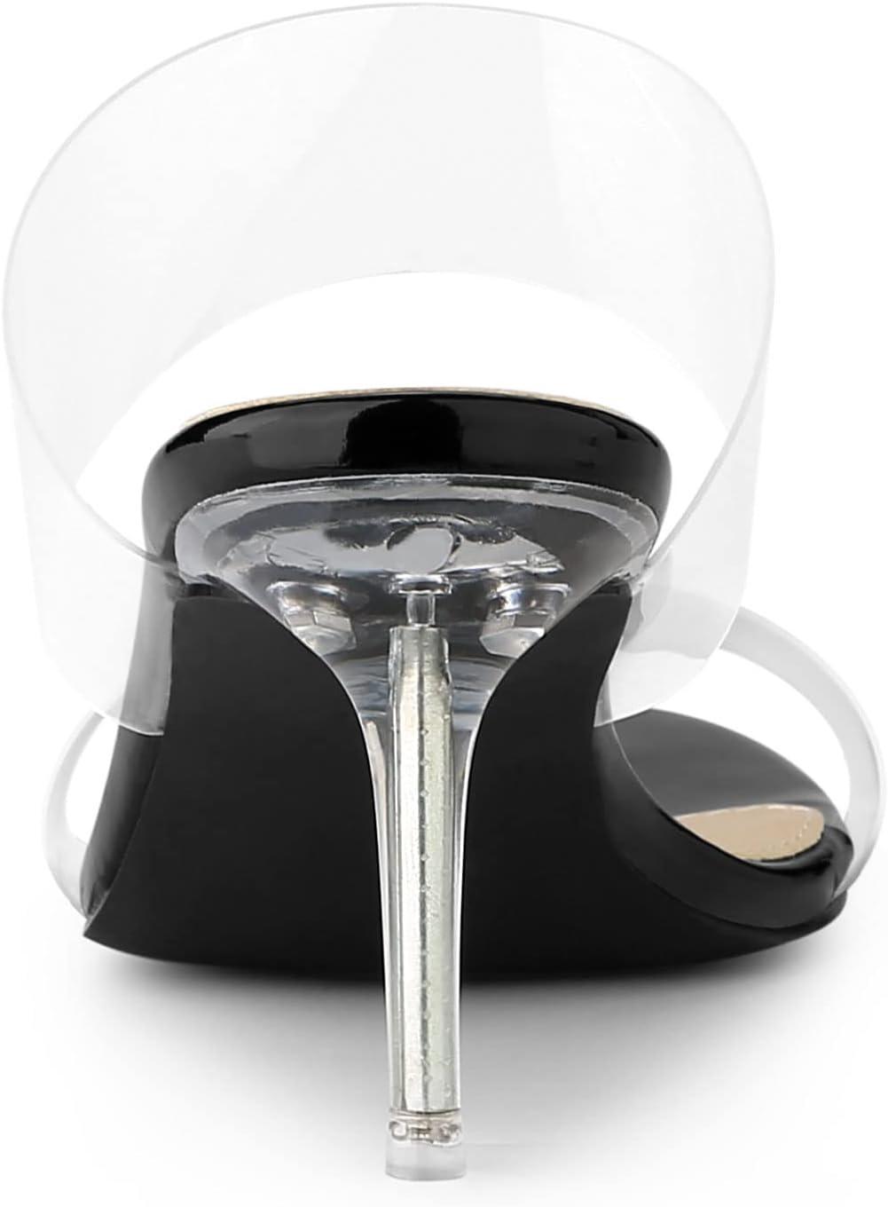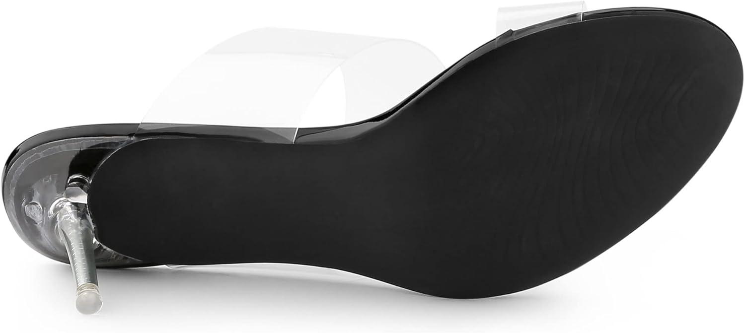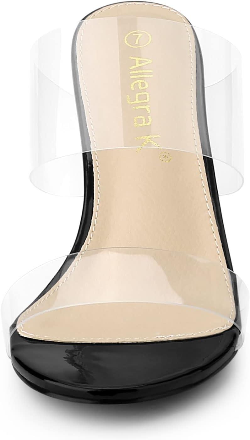 Allegra K Women’s Clear Slide Stiletto Heel Clear Sandals(Black)