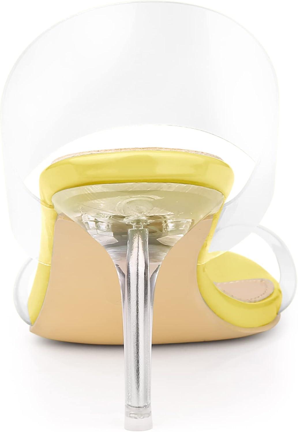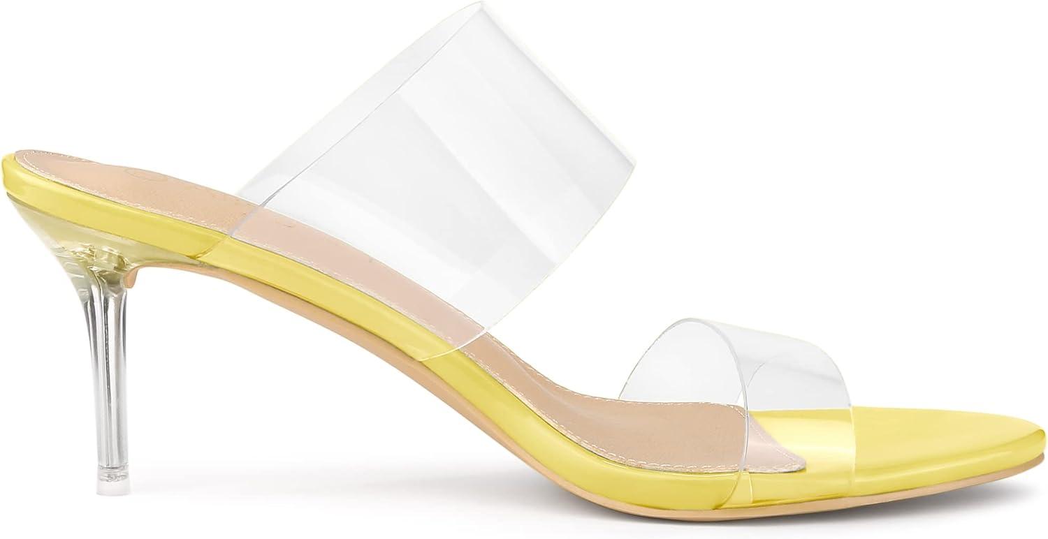 Allegra K Women’s Clear Slide Stiletto Heel Clear Sandals(Yellow)