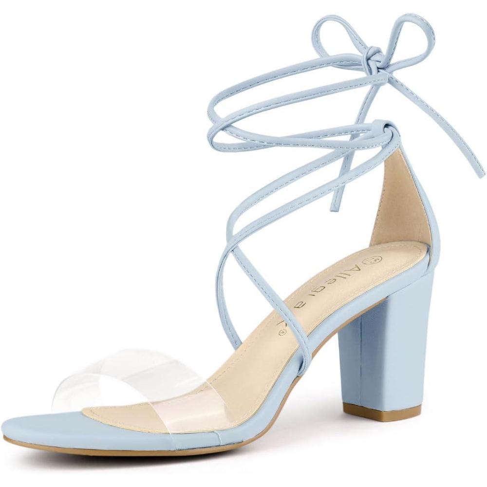 Allegra K Women’s Clear Strap Block Heels Lace Up Heels Sandals(Blue)