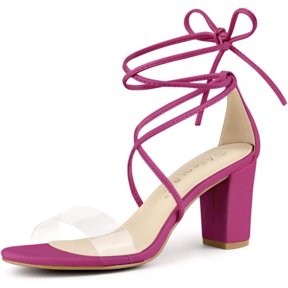 The soft Lace-Up Heels satisfy your craving for an elegant look that's absolutely trend-worthy! The clear strap forms a slender toe strap while soft laces (finished with comfortable aglets) loop through a sturdy heel cup, then wrap and tie around the ankle.