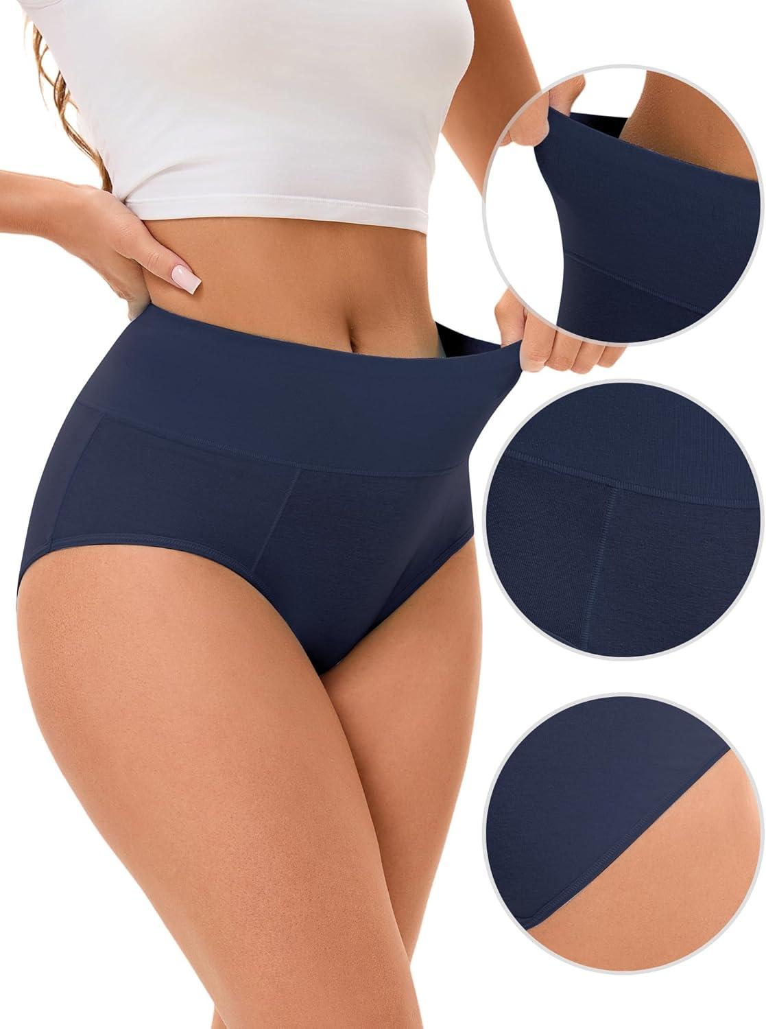 imageAllegra K Womens Cotton High Waist Available in Plus Size Tummy Control UnderwearDark Gray Blue