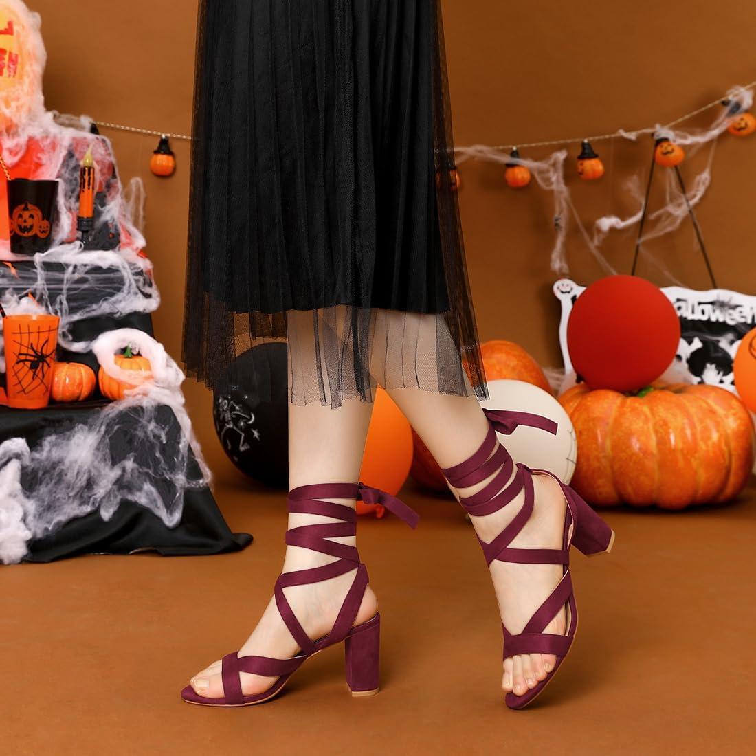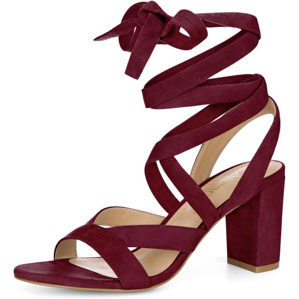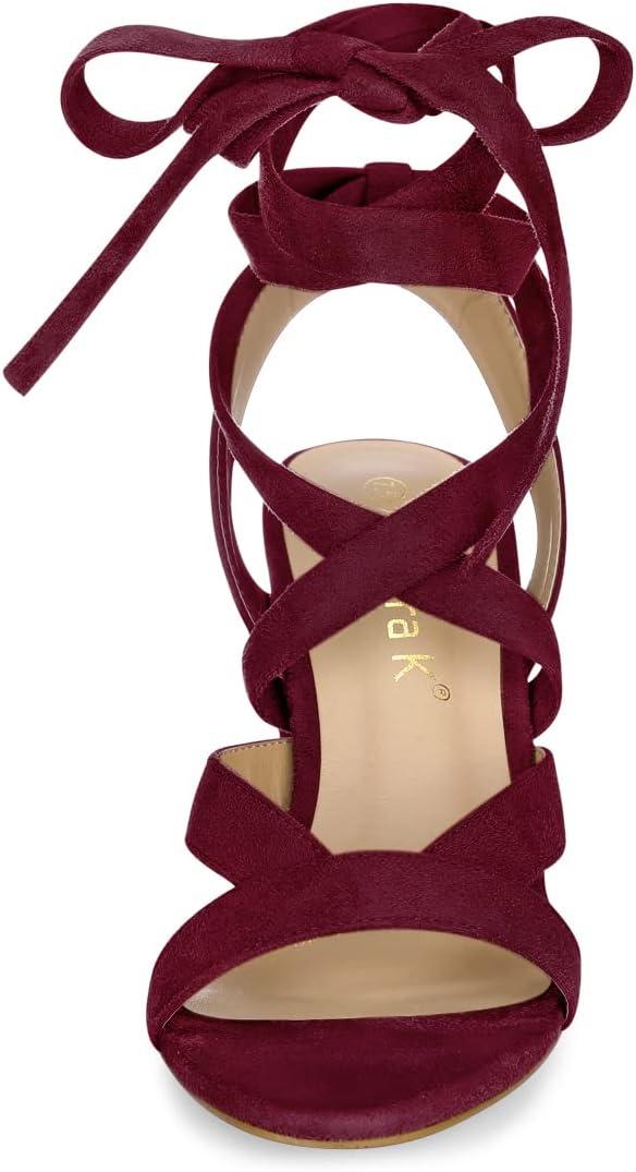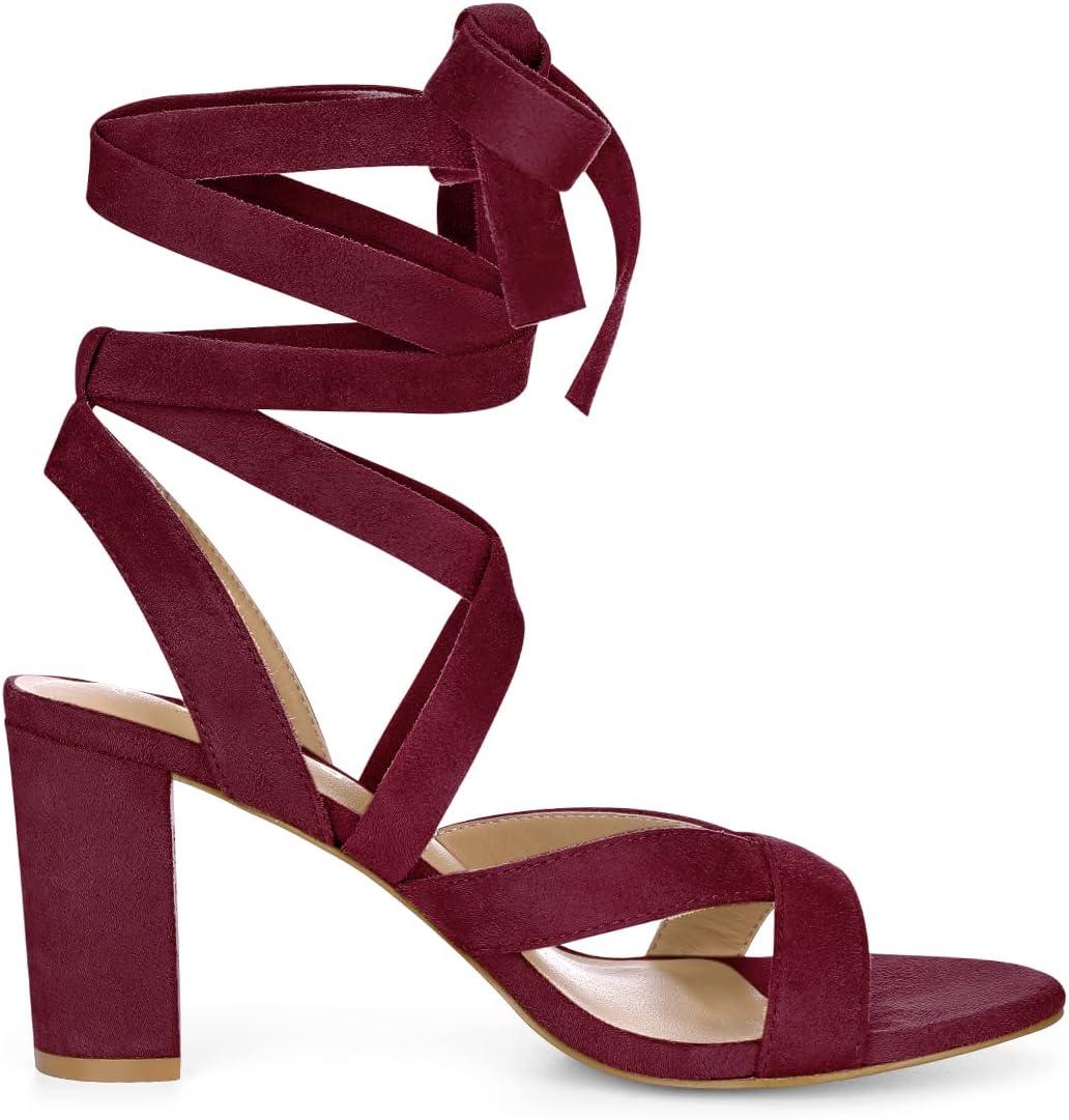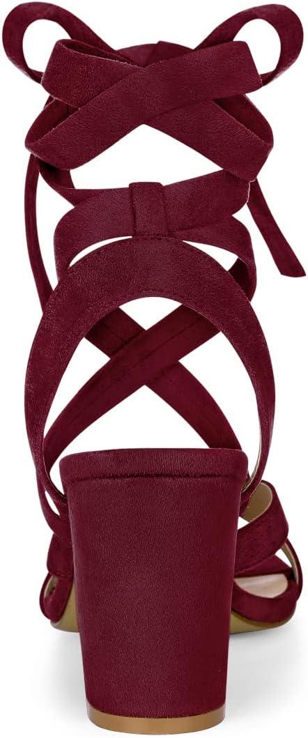 Allegra K Women’s Crisscross Chunky Heel Lace Ups Sandals(Burgundy)