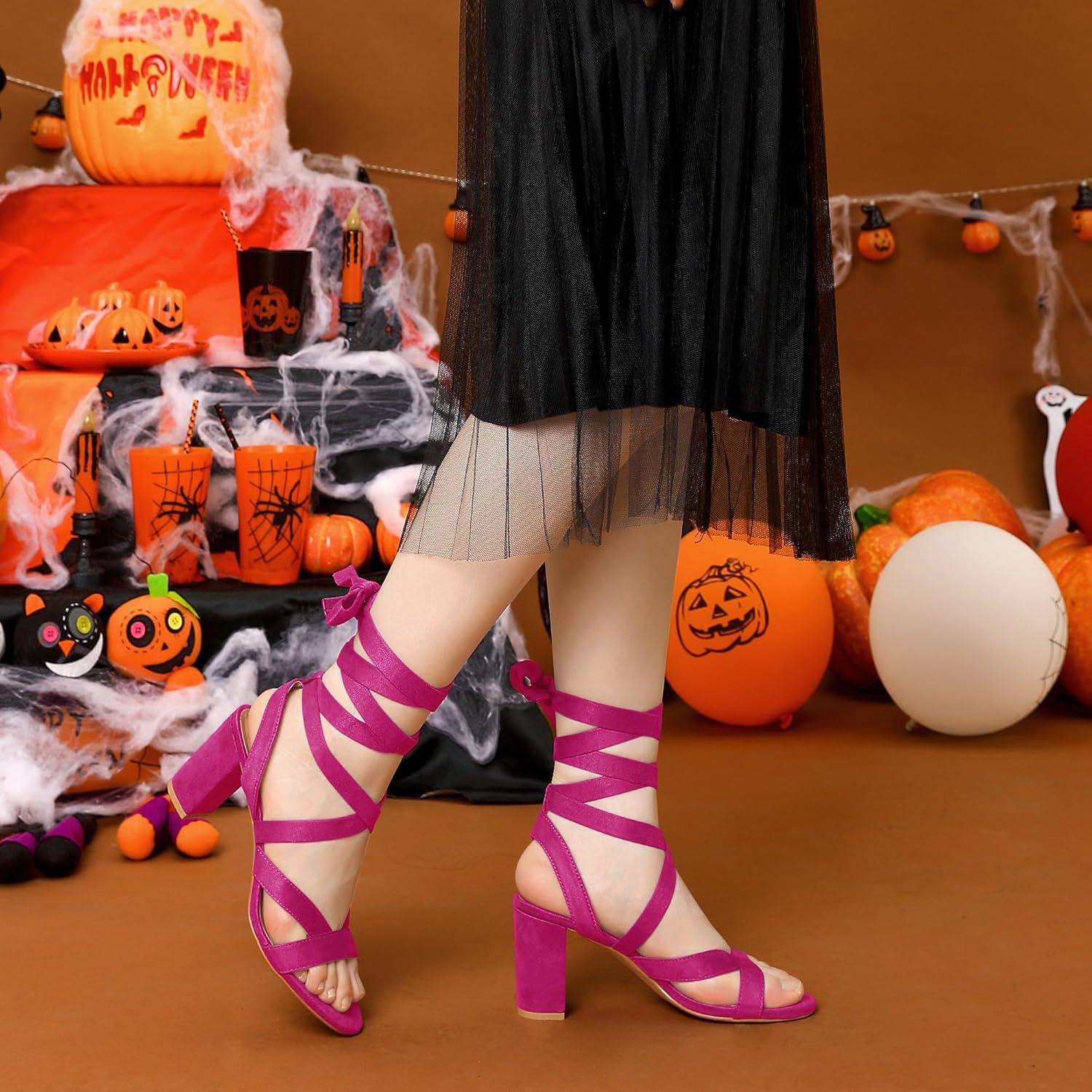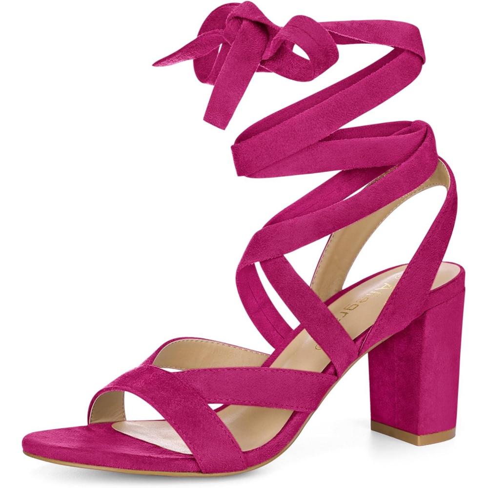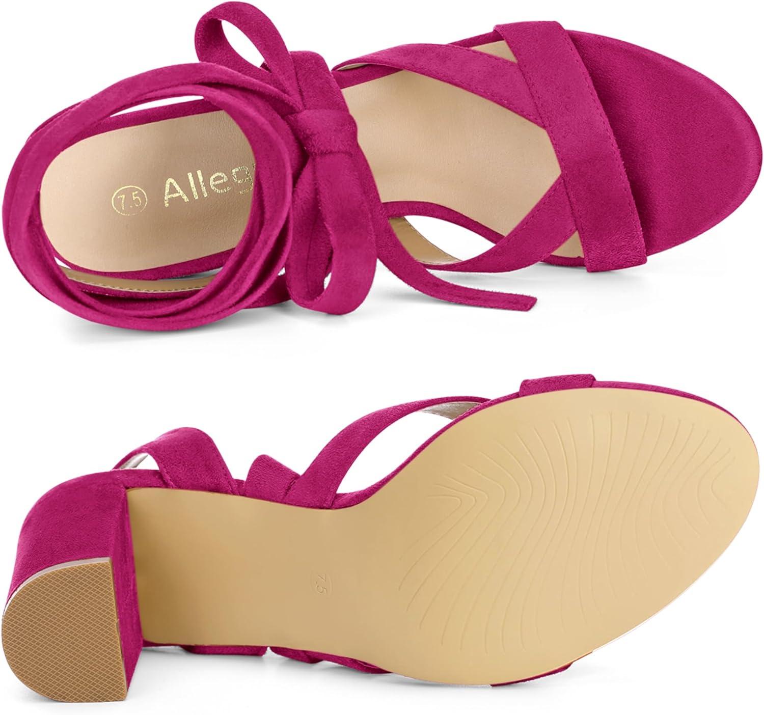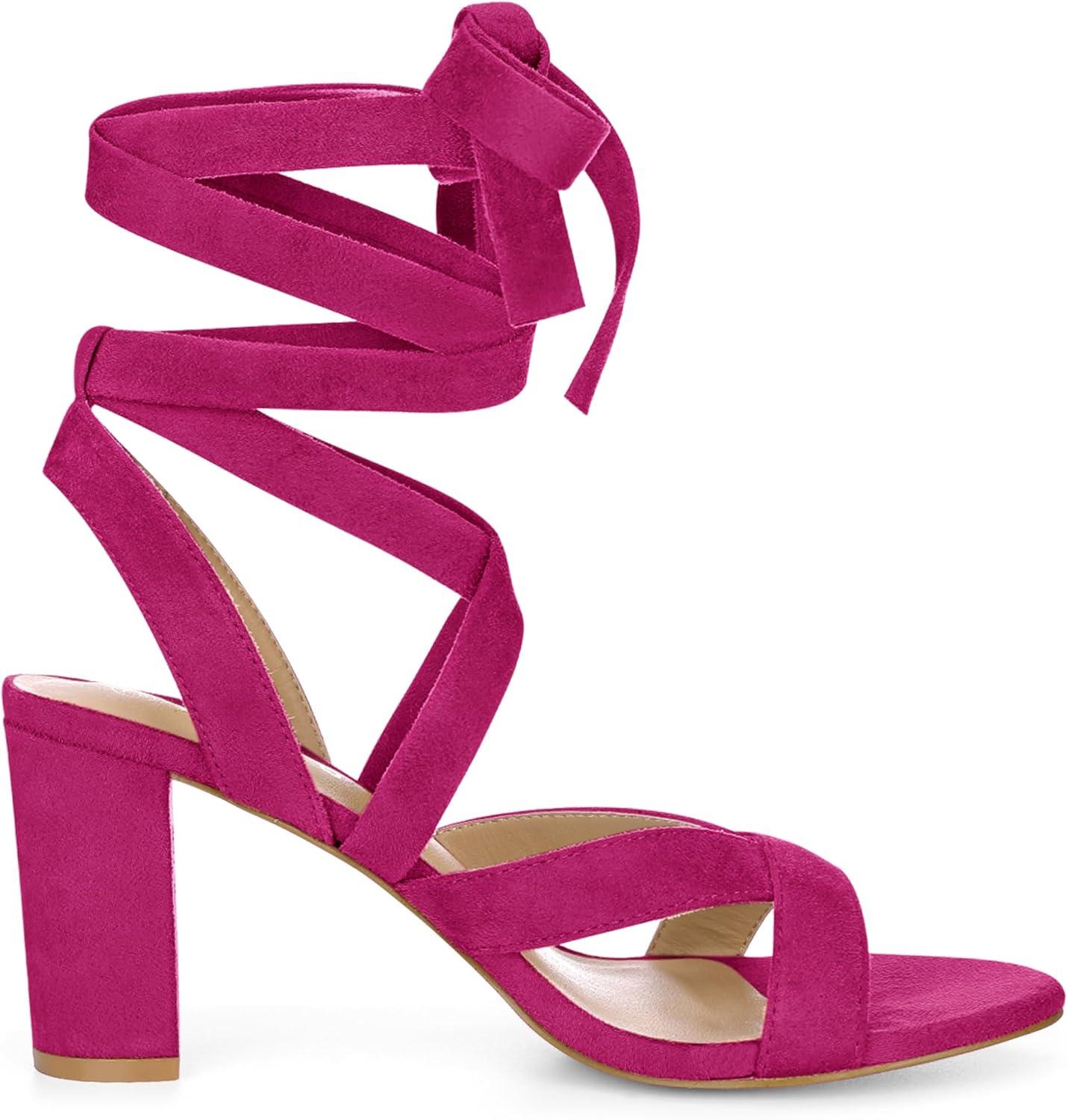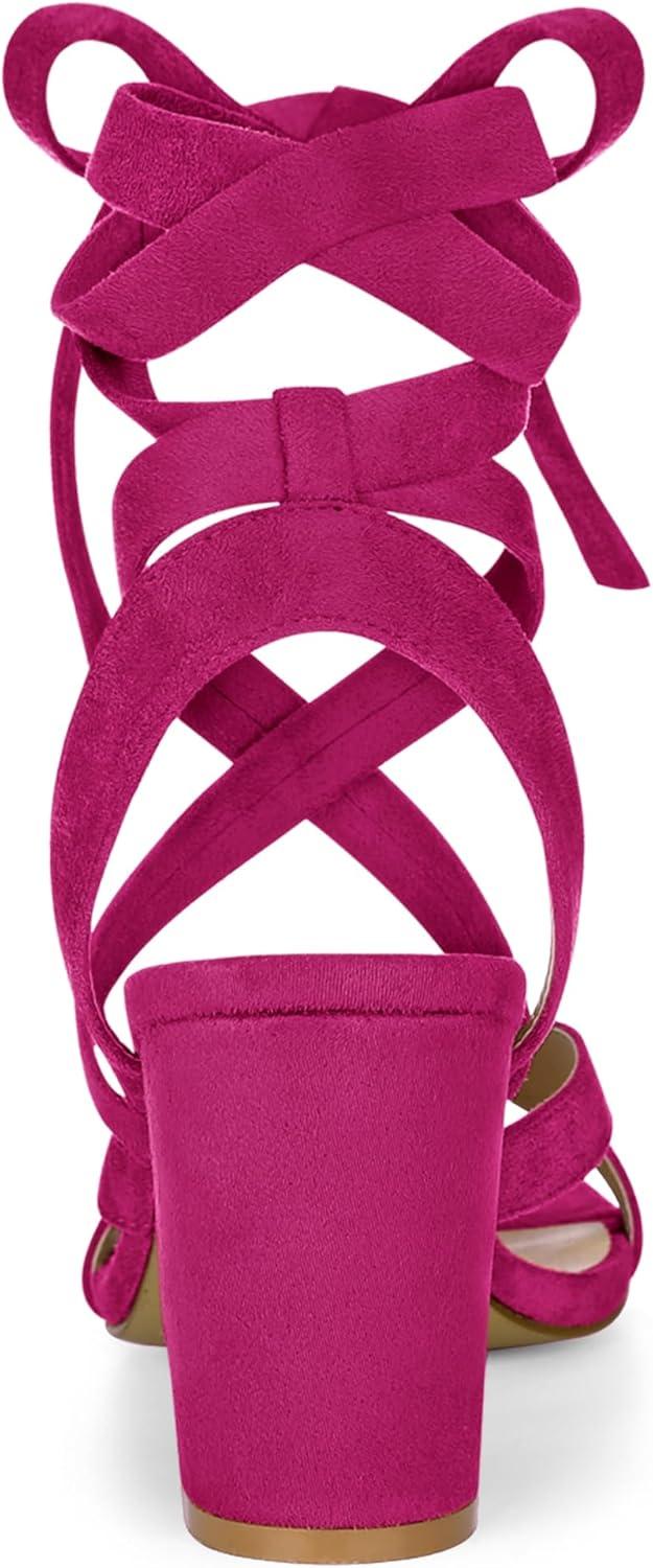 Allegra K Women’s Crisscross Chunky Heel Lace Ups Sandals(Hot Pink)