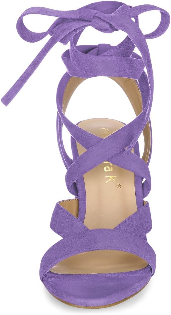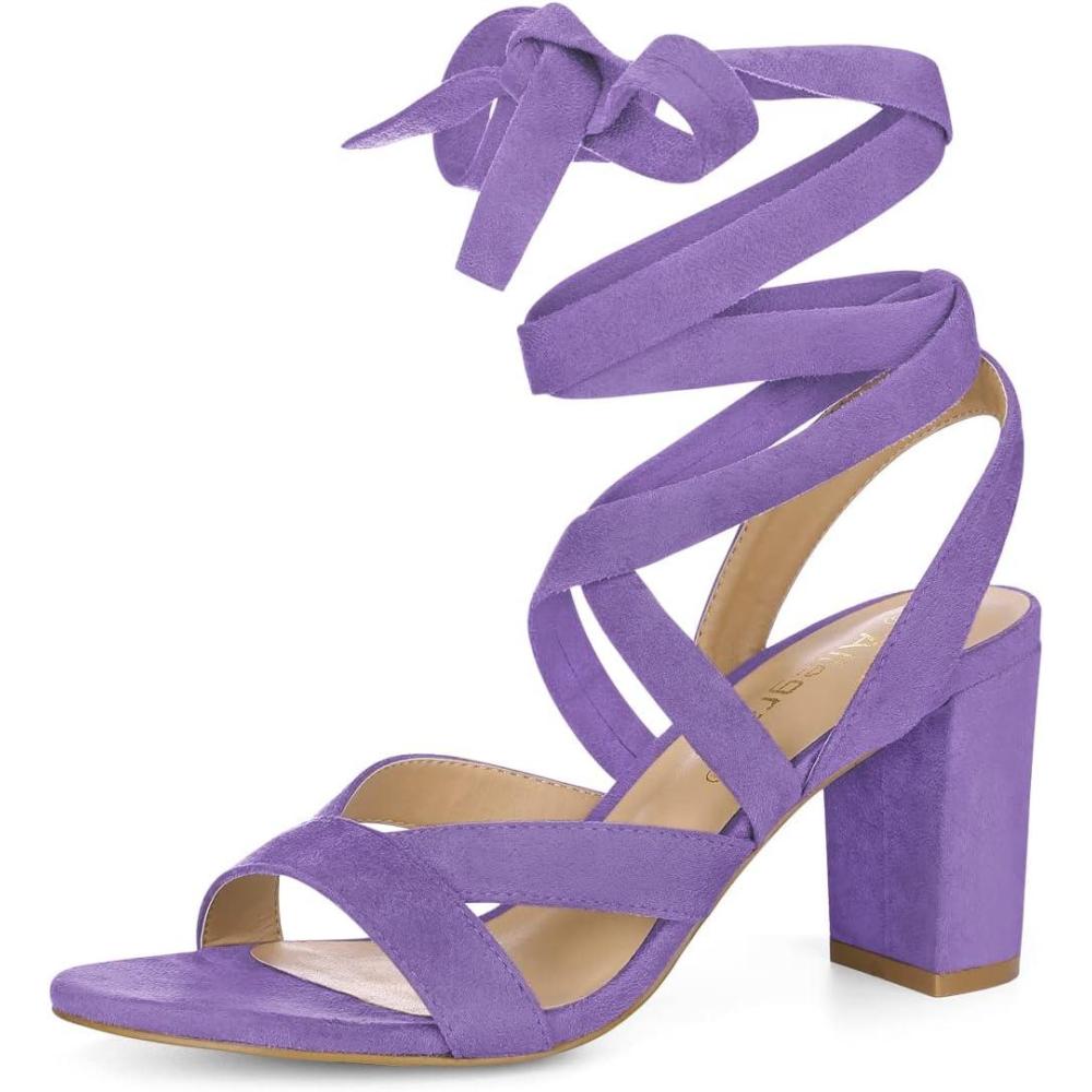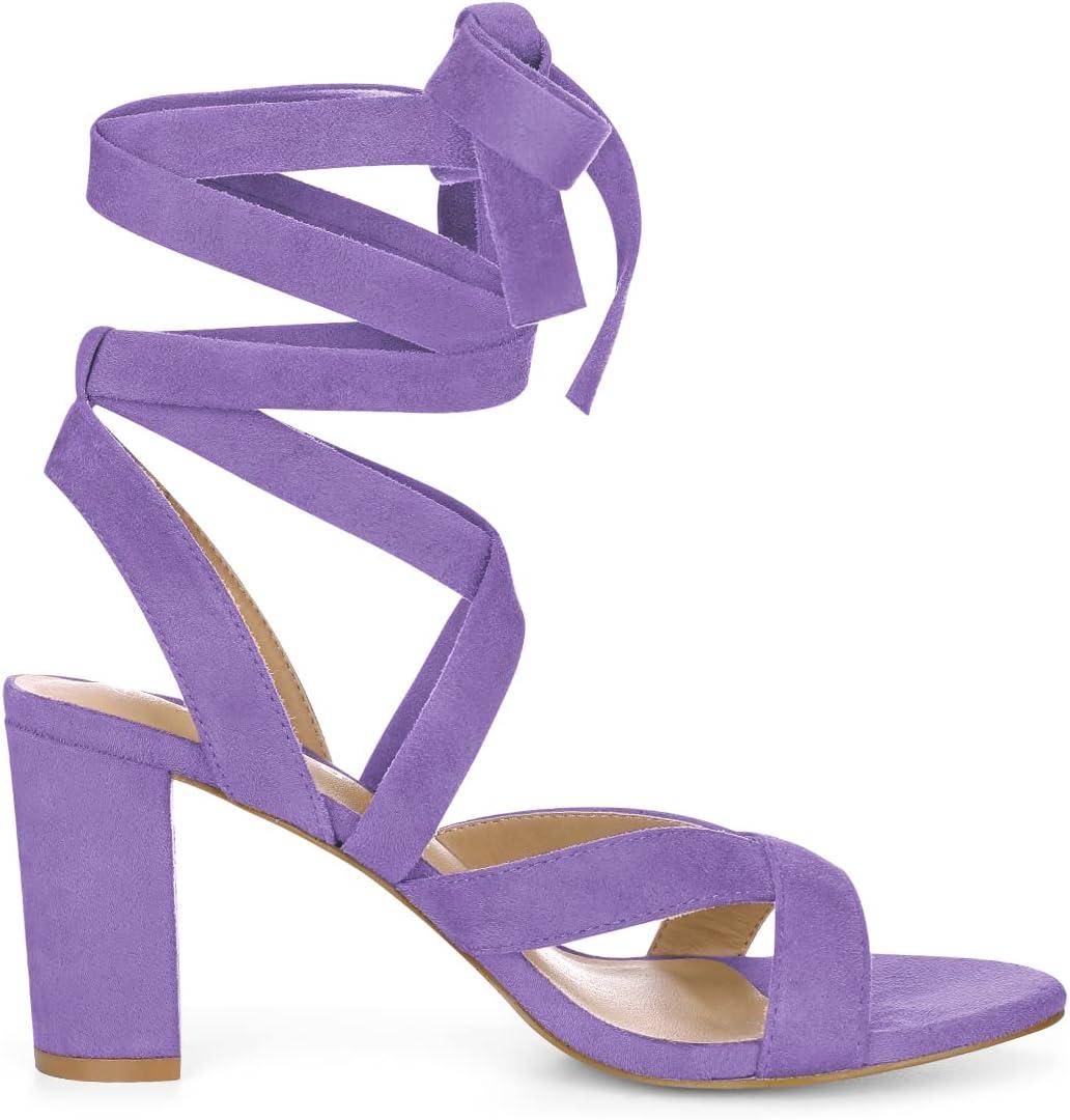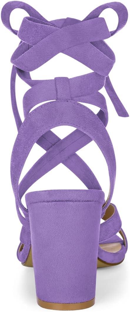 Allegra K Women’s Crisscross Chunky Heel Lace Ups Sandals(Purple)