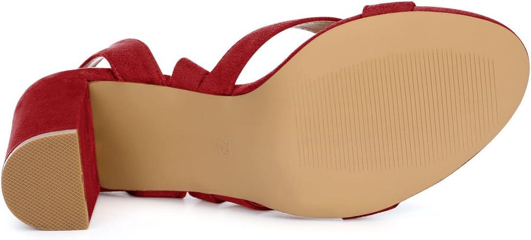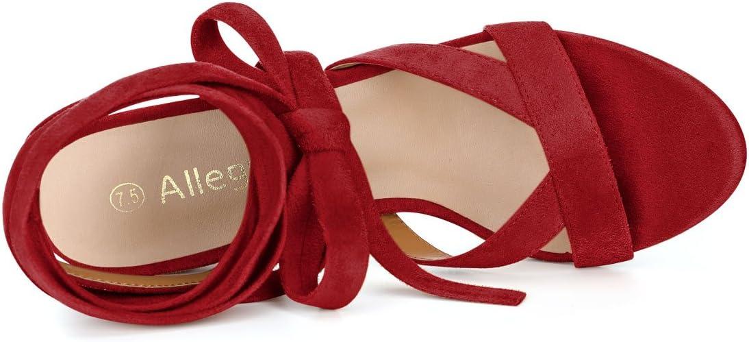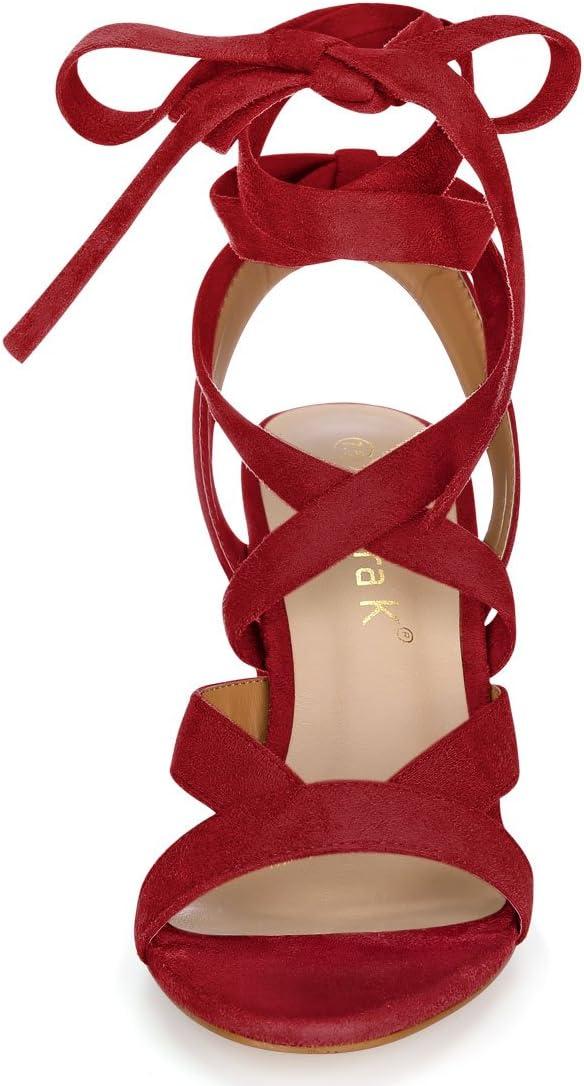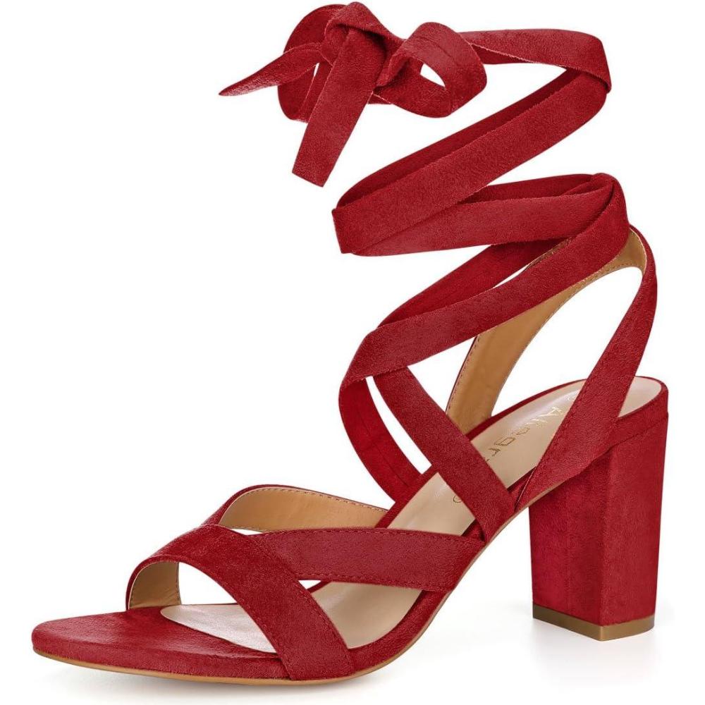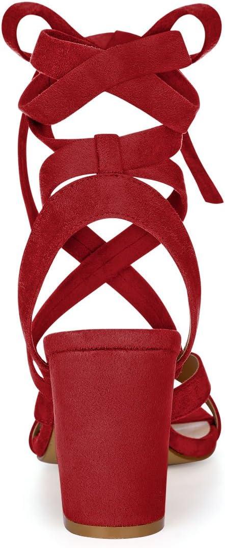 Allegra K Women’s Crisscross Chunky Heel Lace Ups Sandals(Red)