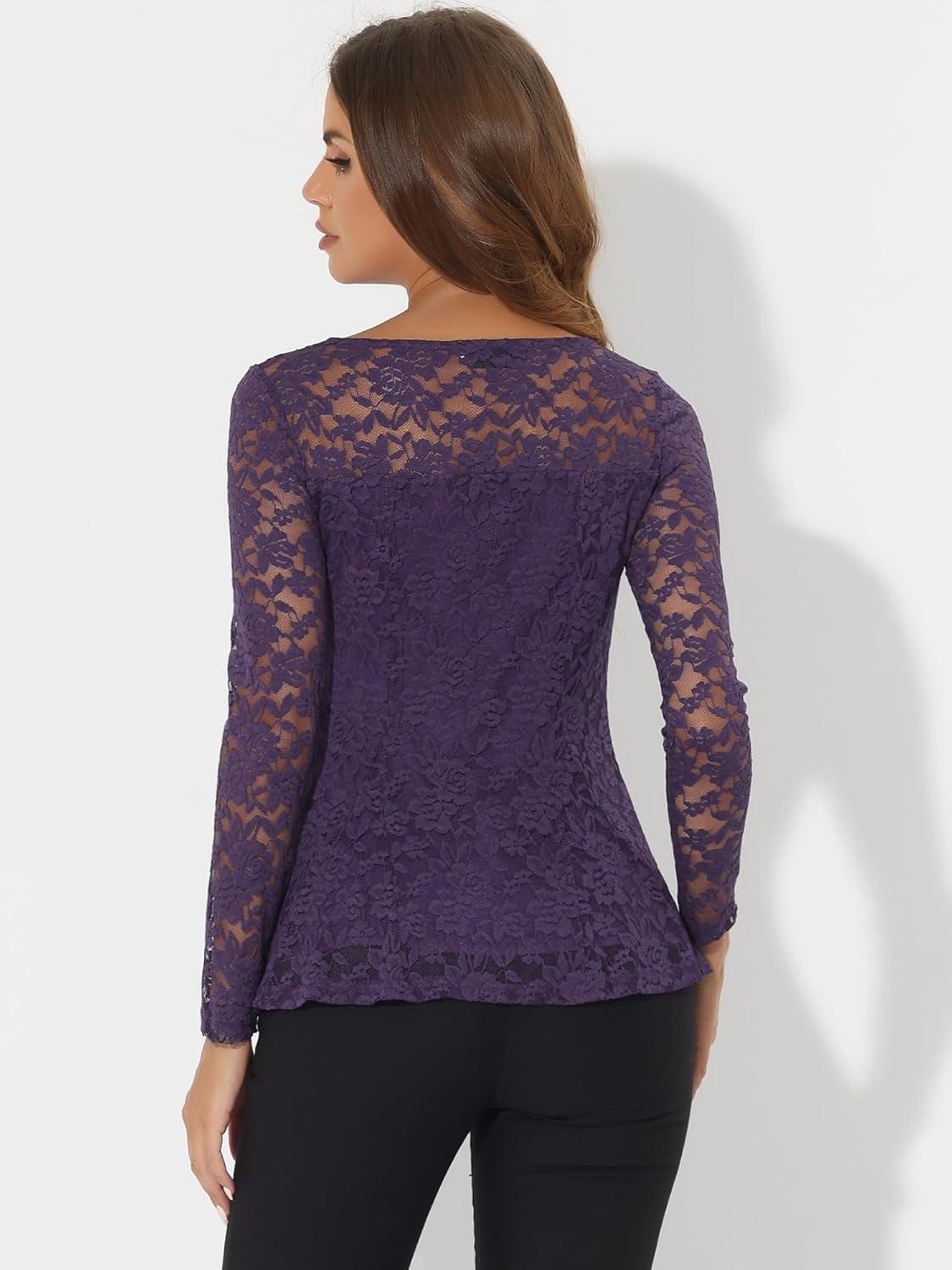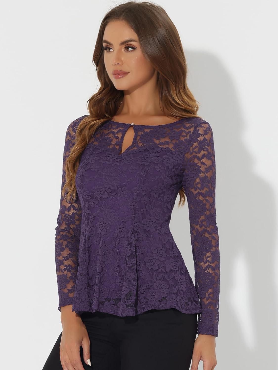 Allegra K Women’s Dressy Top Formal Wedding Guest Long Sleeve Lace Peplum Blouse(Purple)