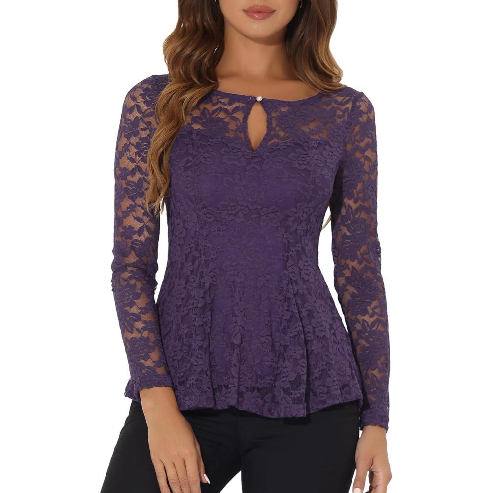 Get your hands on our exclusive Allegra K Women’s Dressy Top Formal Wedding Guest Long Sleeve Lace Peplum Blouse(Purple) collection, now at a discounted price.