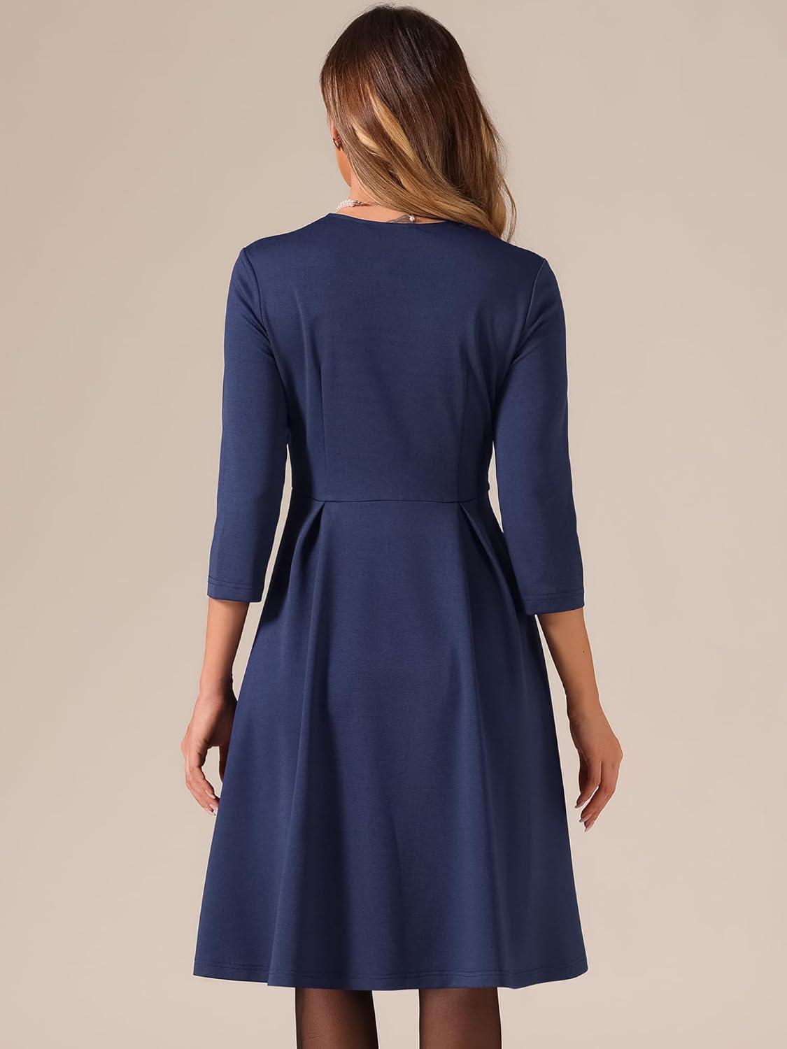 imageAllegra K Womens Elegant 34 Sleeve High Waist Sweetheart Neck ALine Pleated Midi DressDark Blue