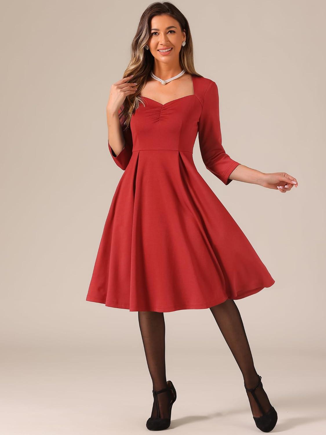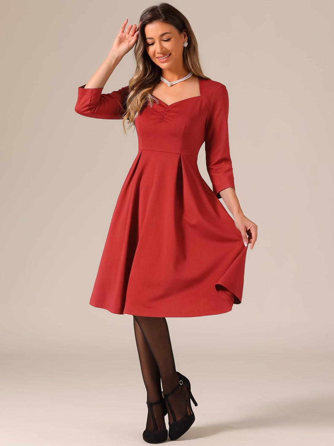 Our holiday sale features the best deals on Allegra K Women’s Elegant 3/4 Sleeve High Waist Sweetheart Neck A-Line Pleated Midi Dress(Red) and accessories. Shop now and save!