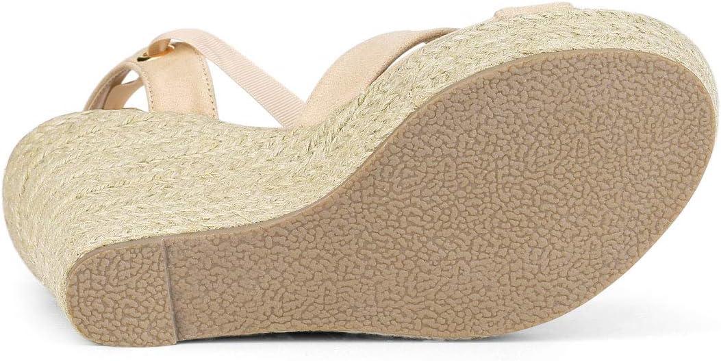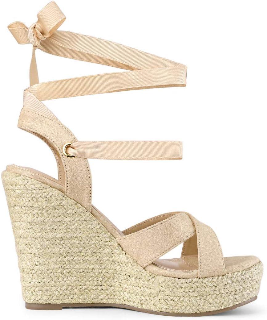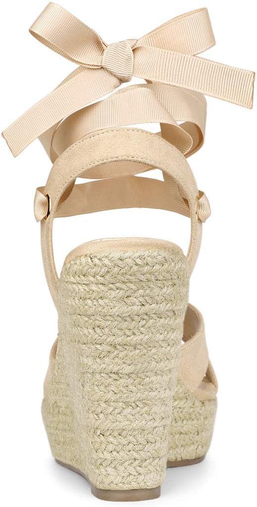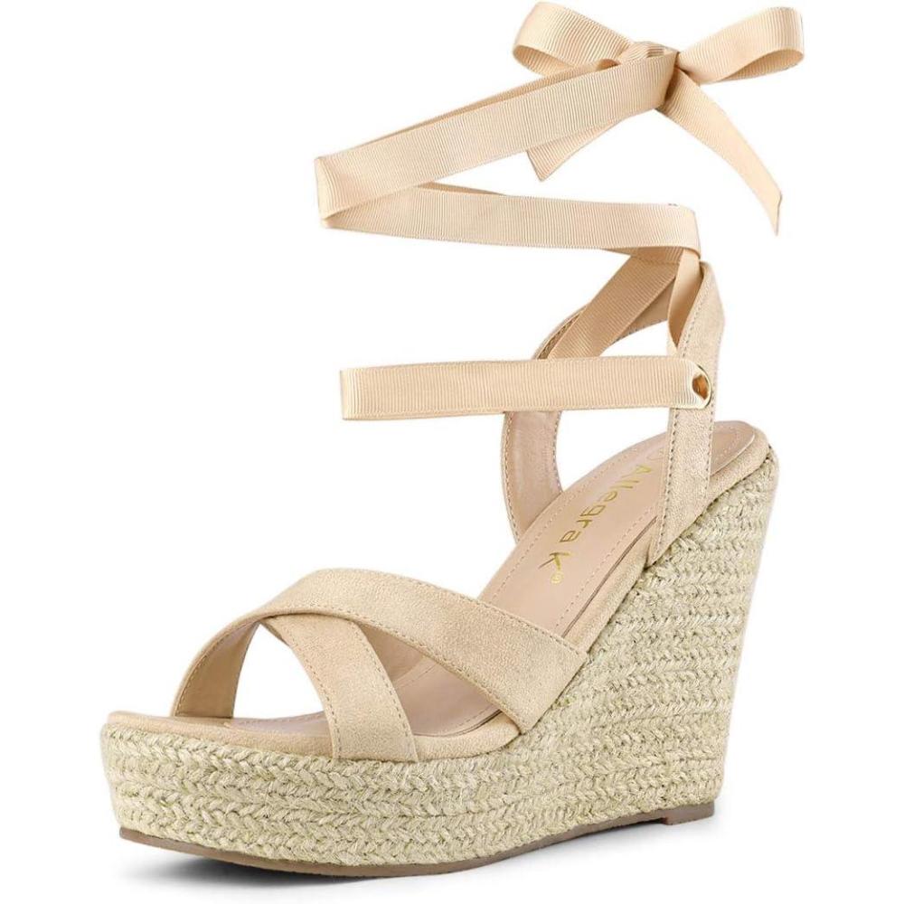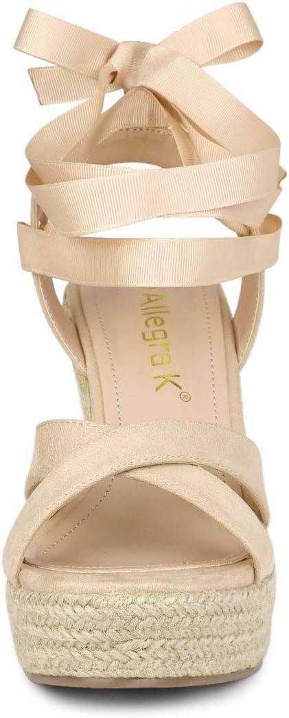 Allegra K Women’s Espadrille Platform Lace Up Wedges Sandals(Beige)