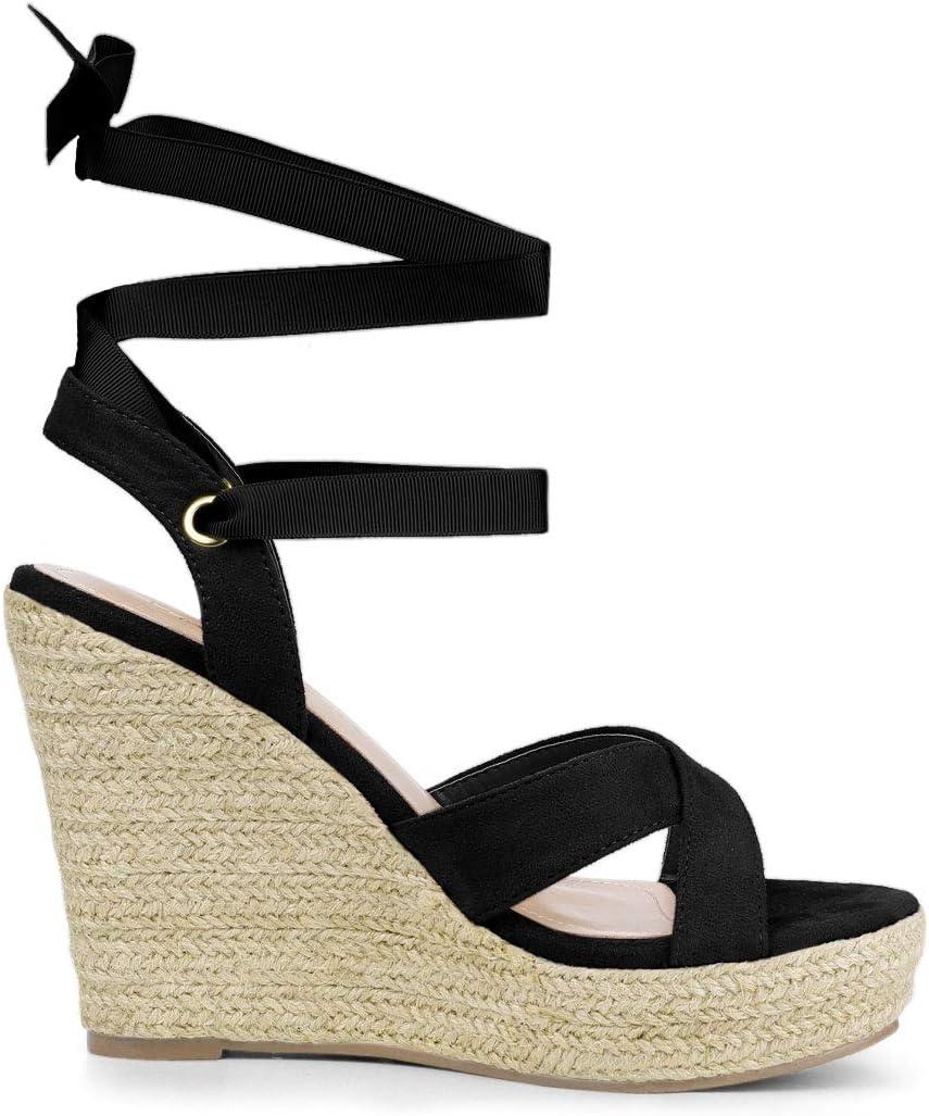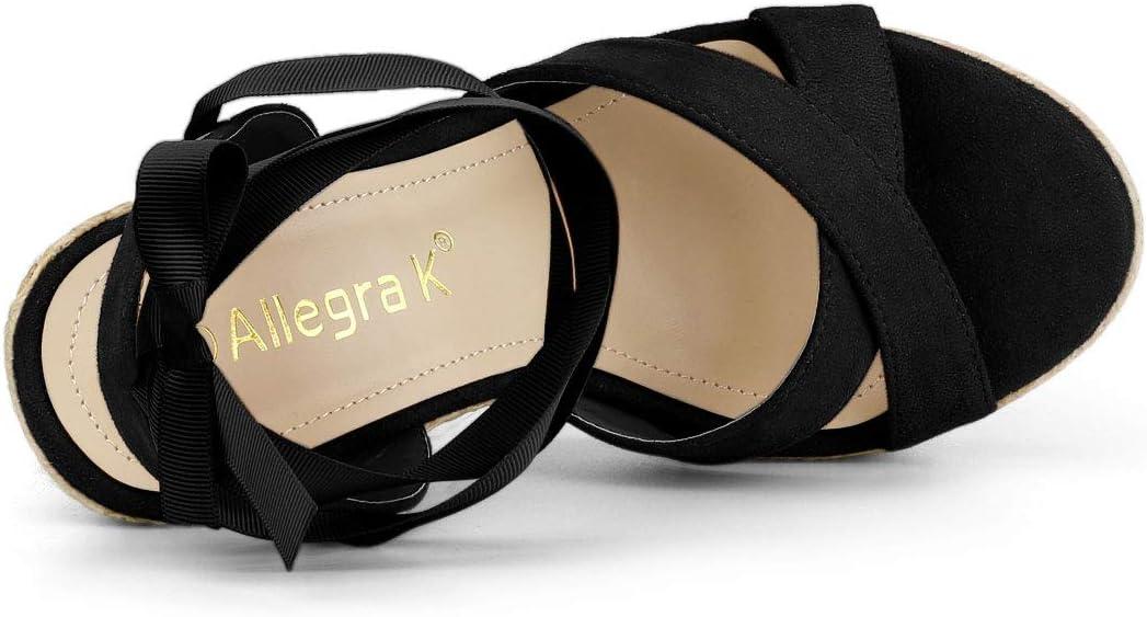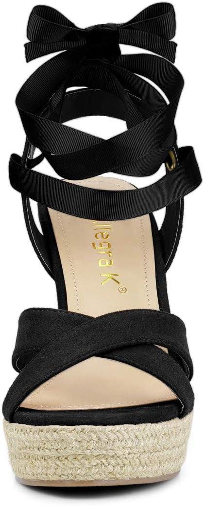 Allegra K Women’s Espadrille Platform Lace Up Wedges Sandals(Black)