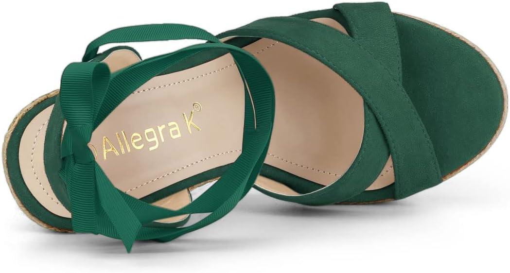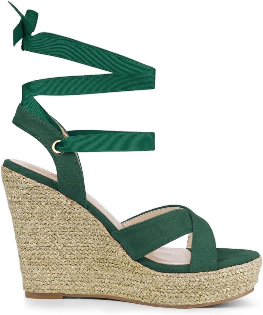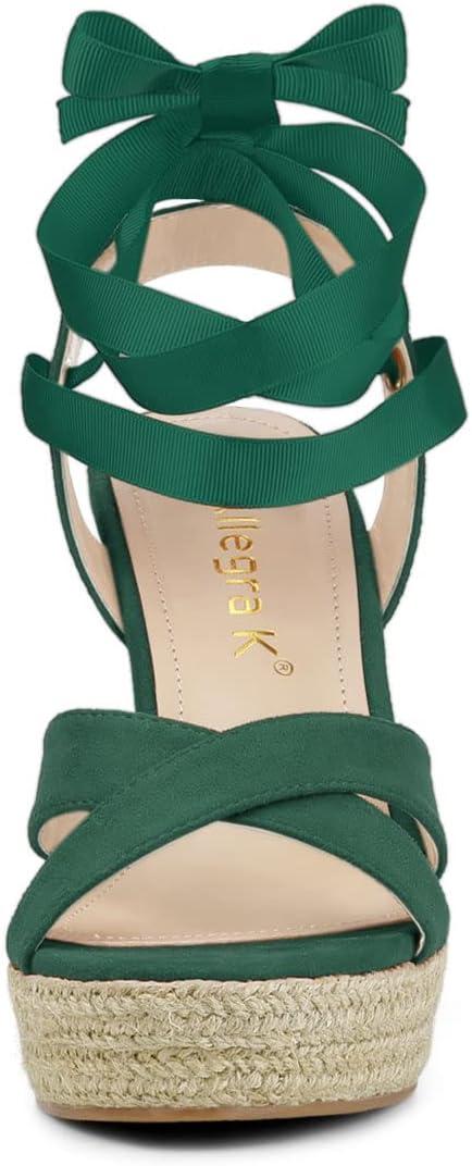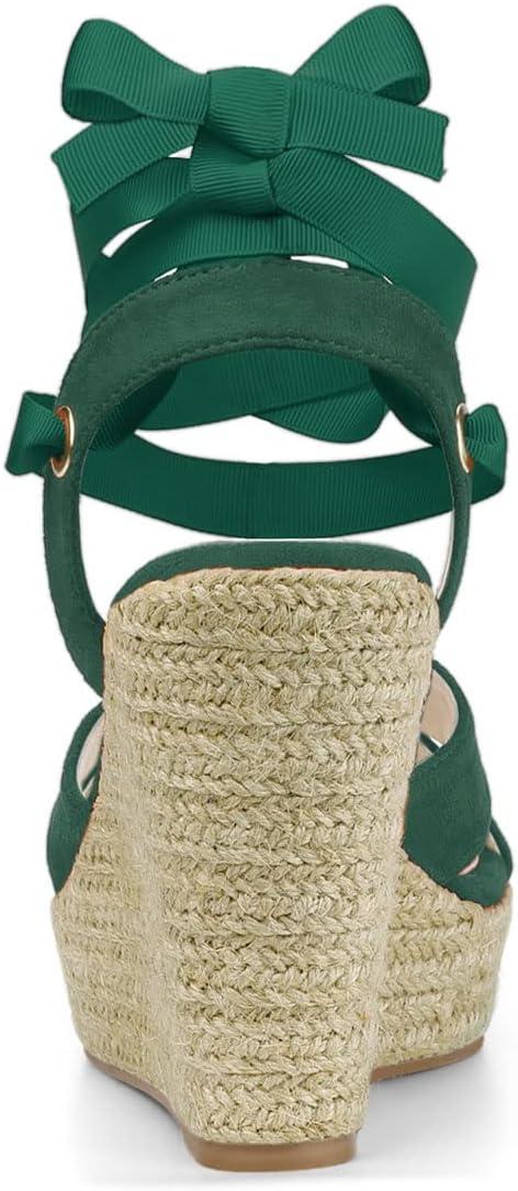 Allegra K Women’s Espadrille Platform Lace Up Wedges Sandals(Emerald Green)