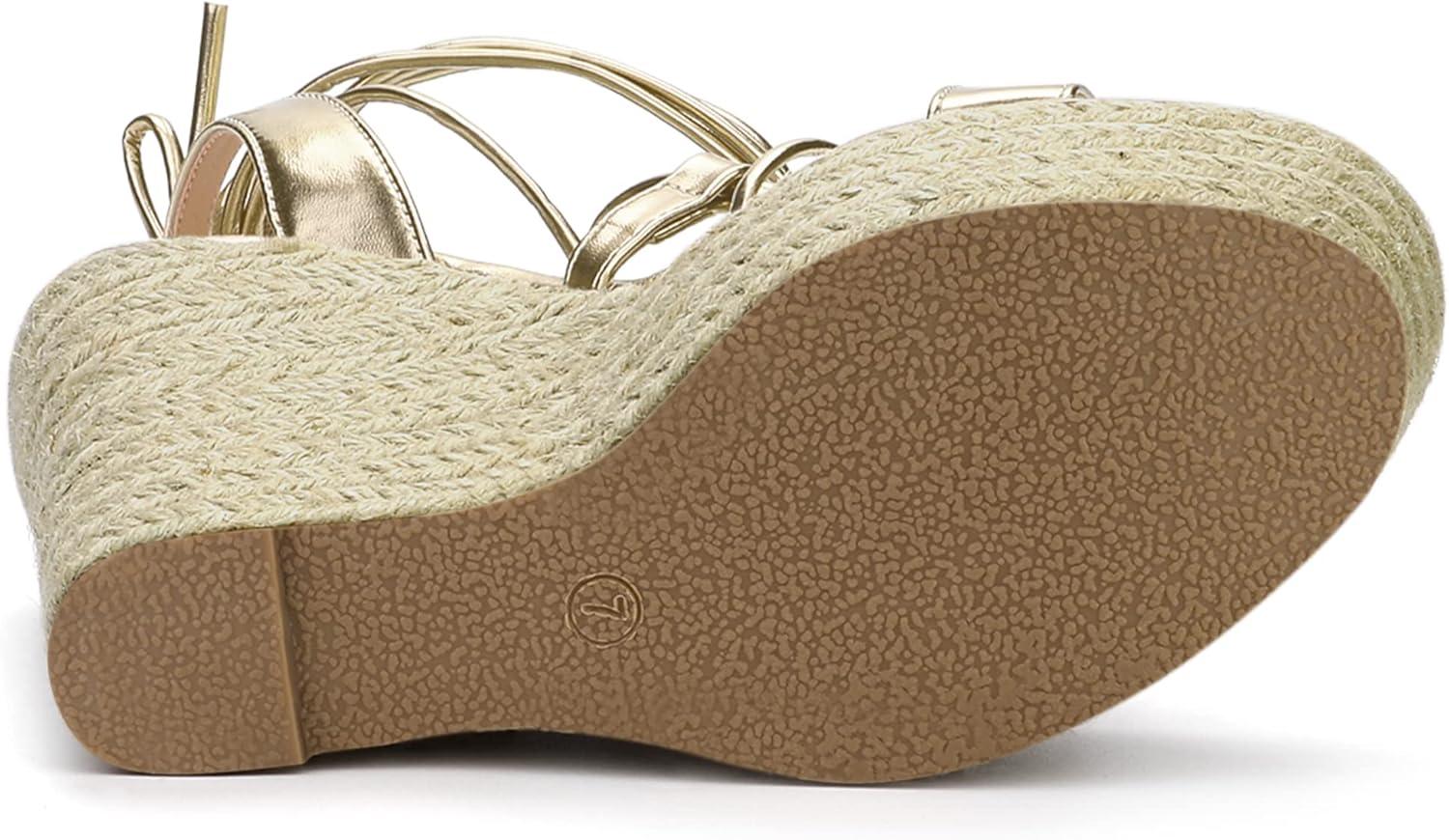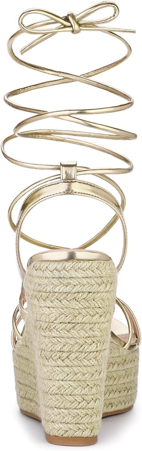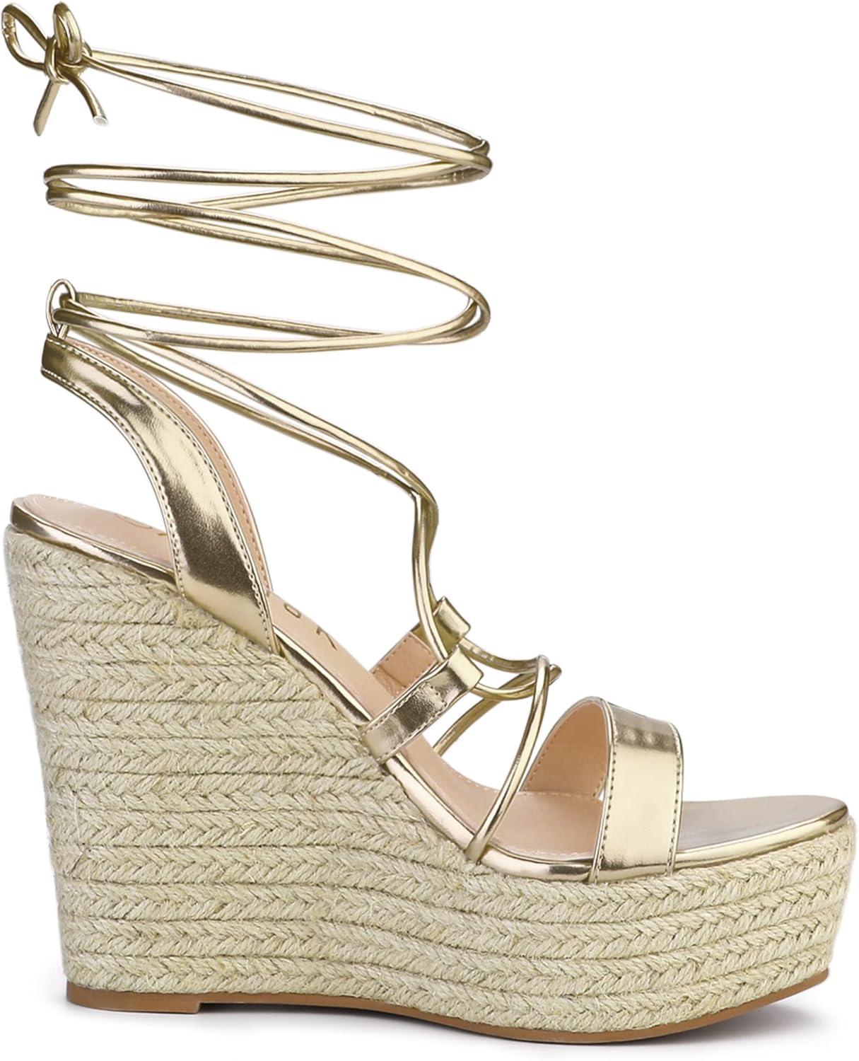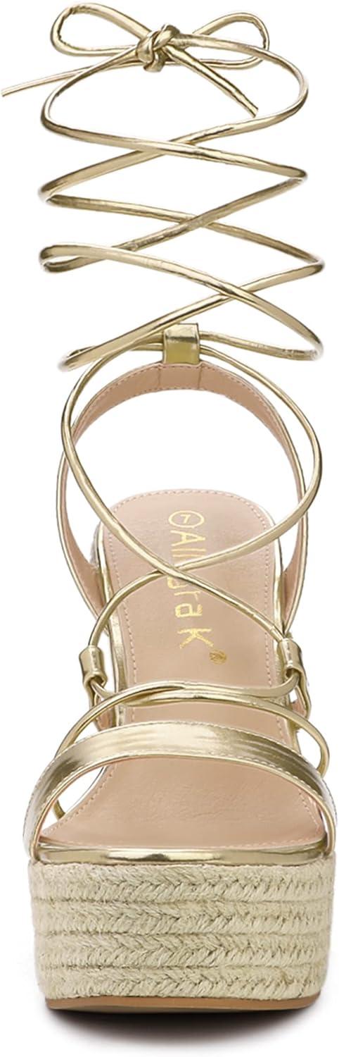 Allegra K Women’s Espadrilles Platform Wedges Heel Lace Up Sandals(Gold)