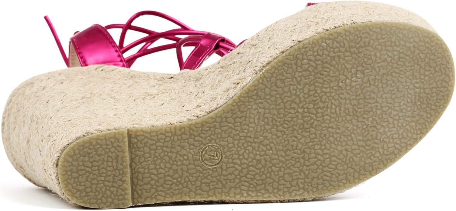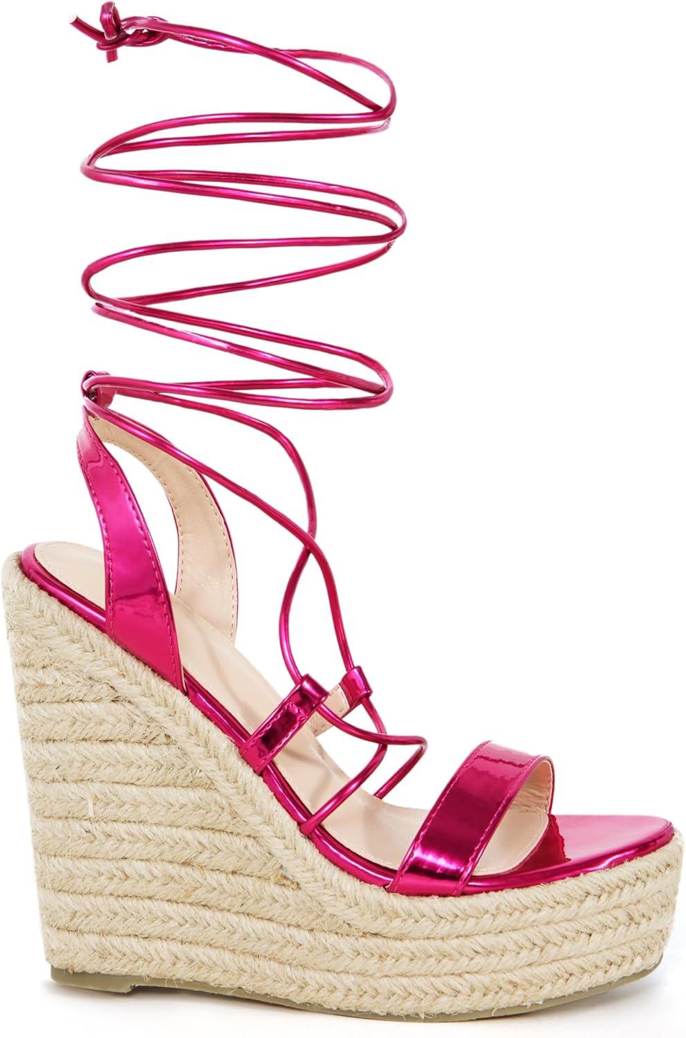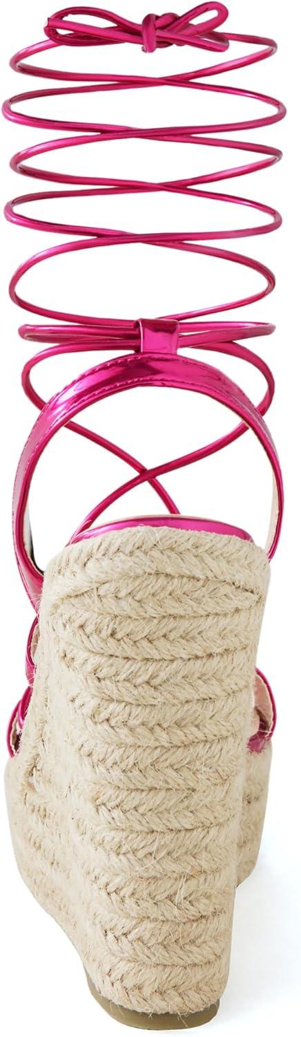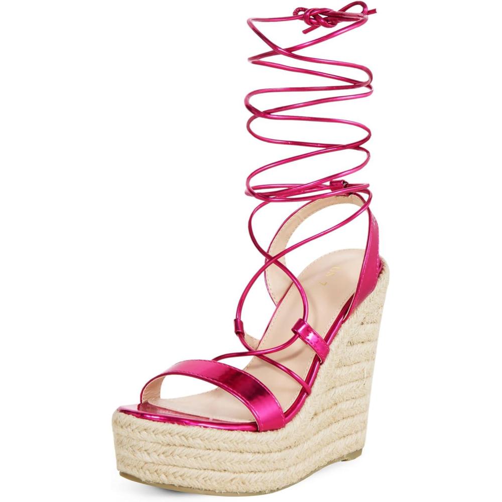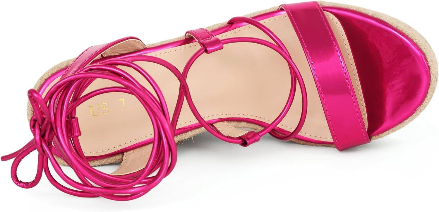 Allegra K Women’s Espadrilles Platform Wedges Heel Lace Up Sandals(Hot Pink)