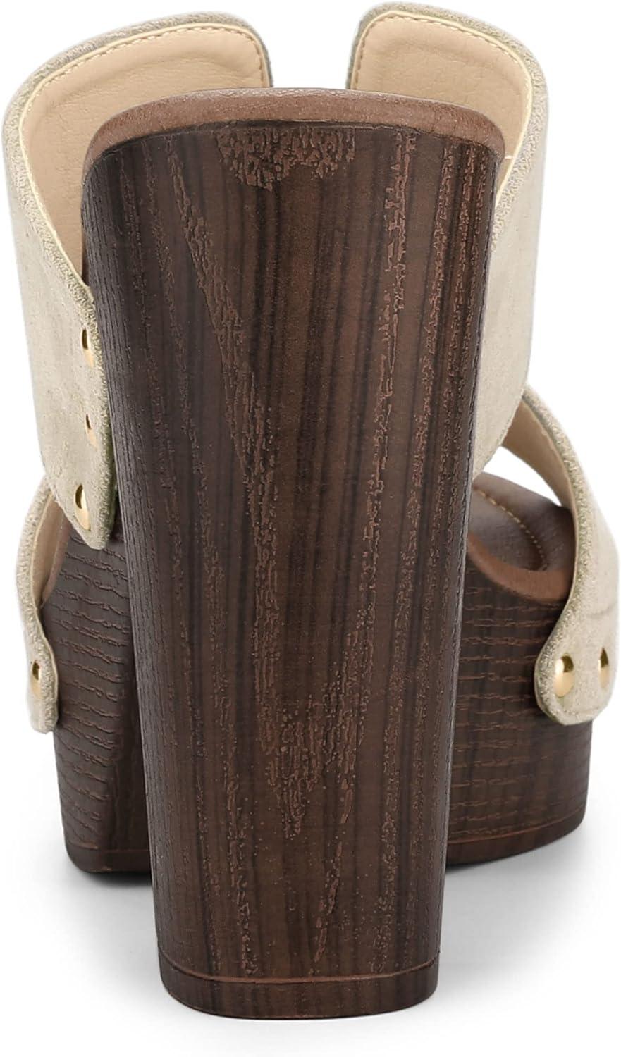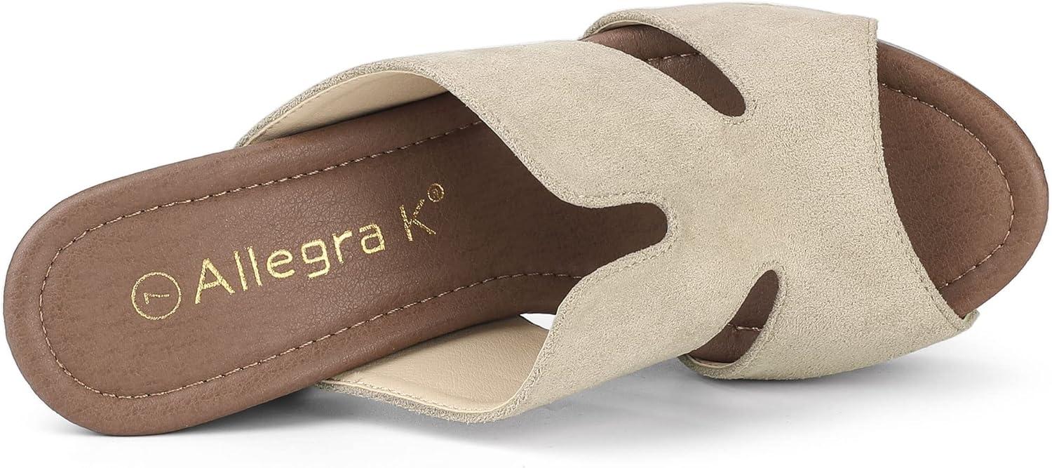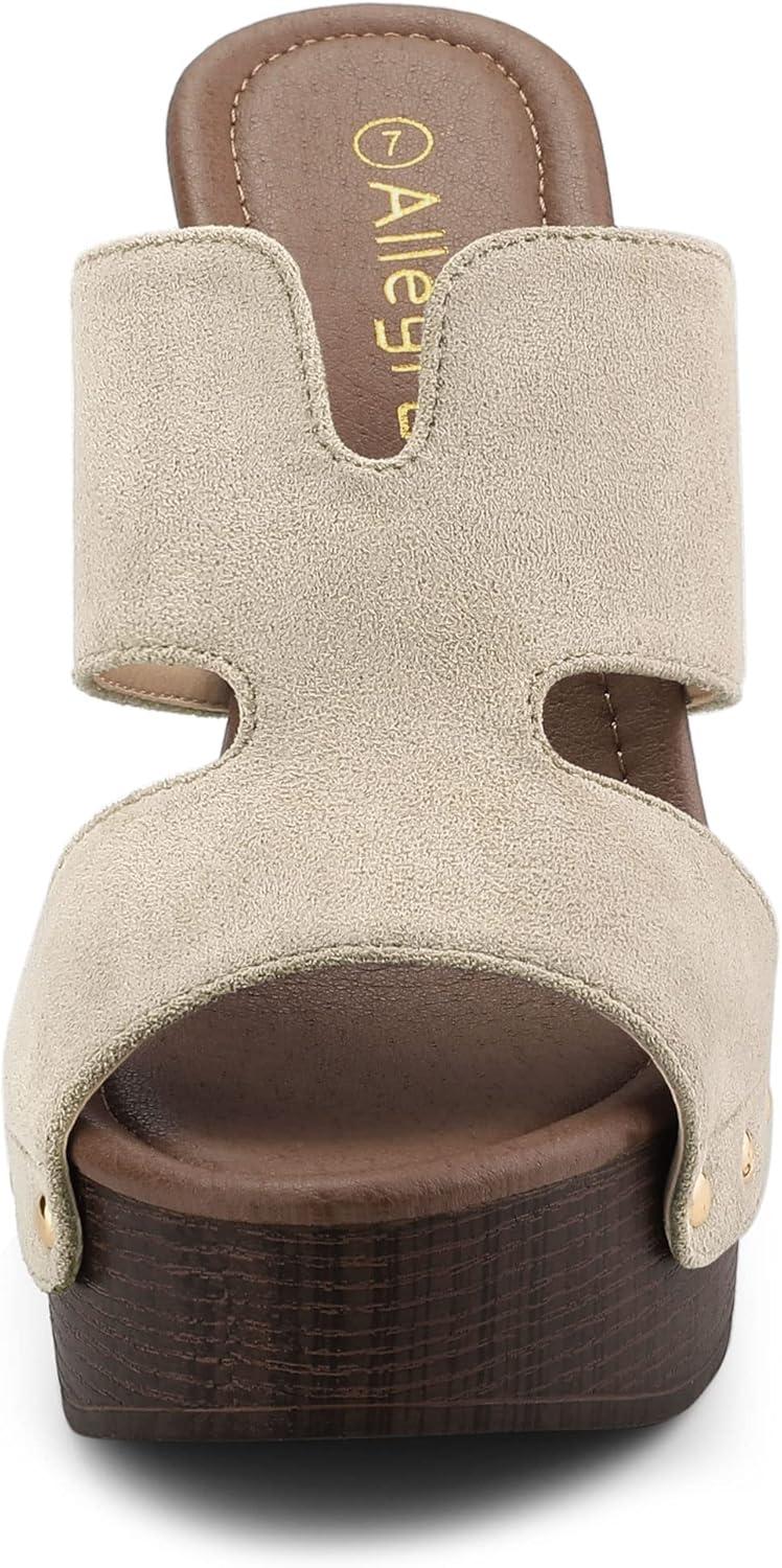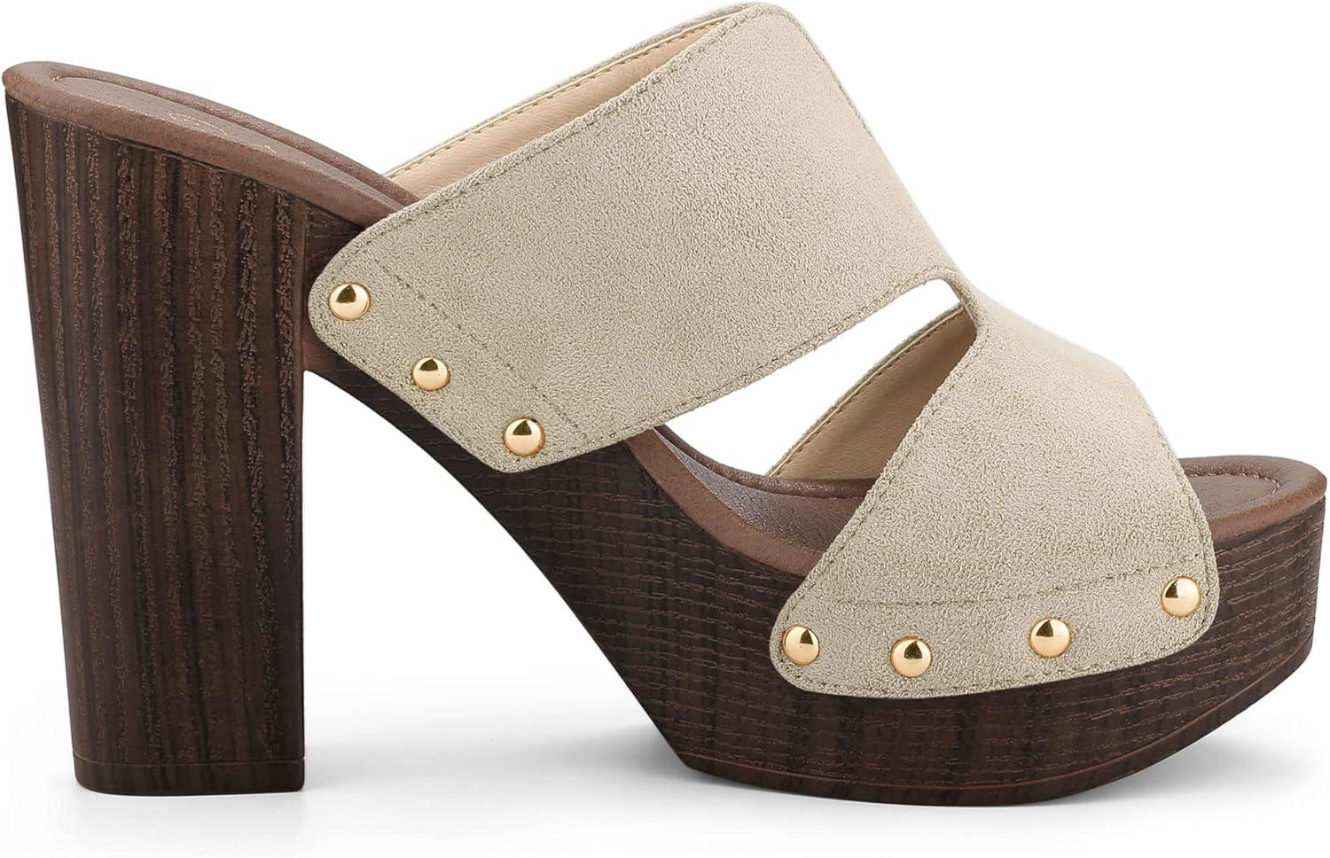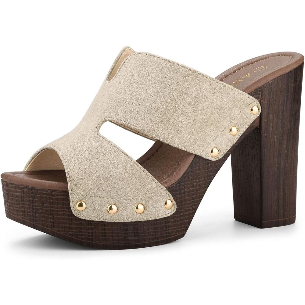 Allegra K Women’s Faux Suede Platform High Block Heel Slides Sandals(Beige)