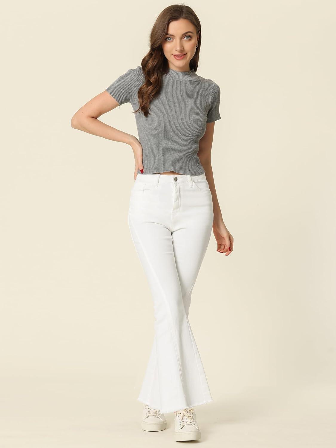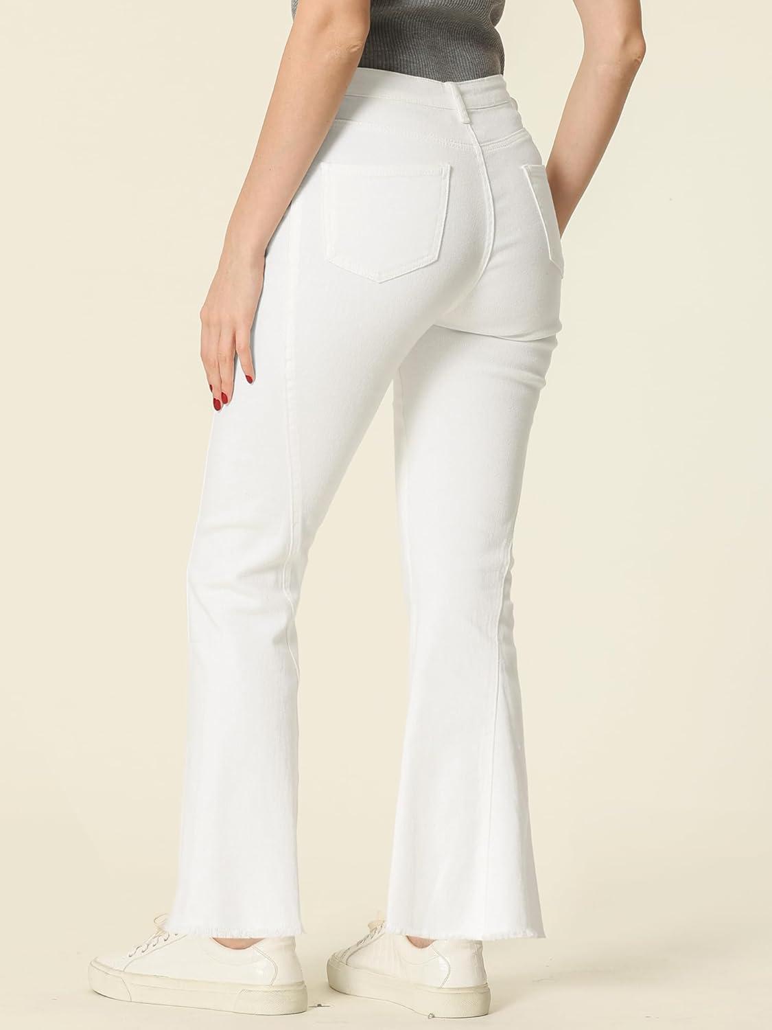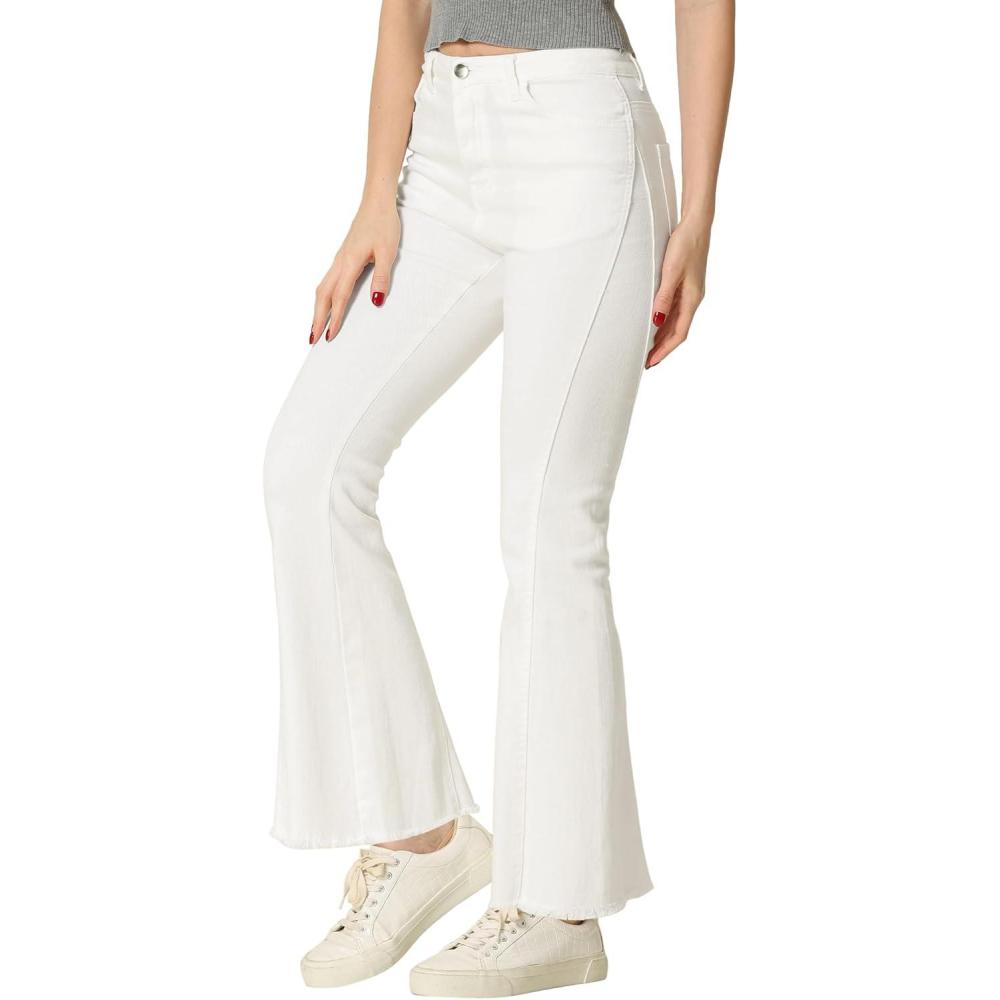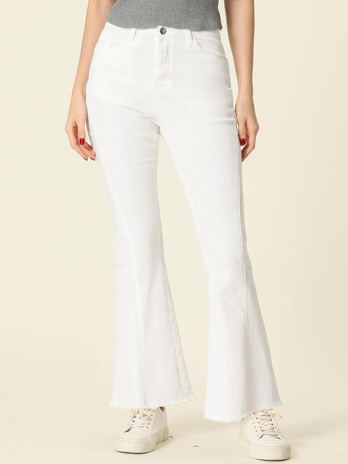 Allegra K Women’s Flare Jeans 70s Outfits High Waisted Stretchy Denim Pants Trendy Bell Bottom Jeans(White)