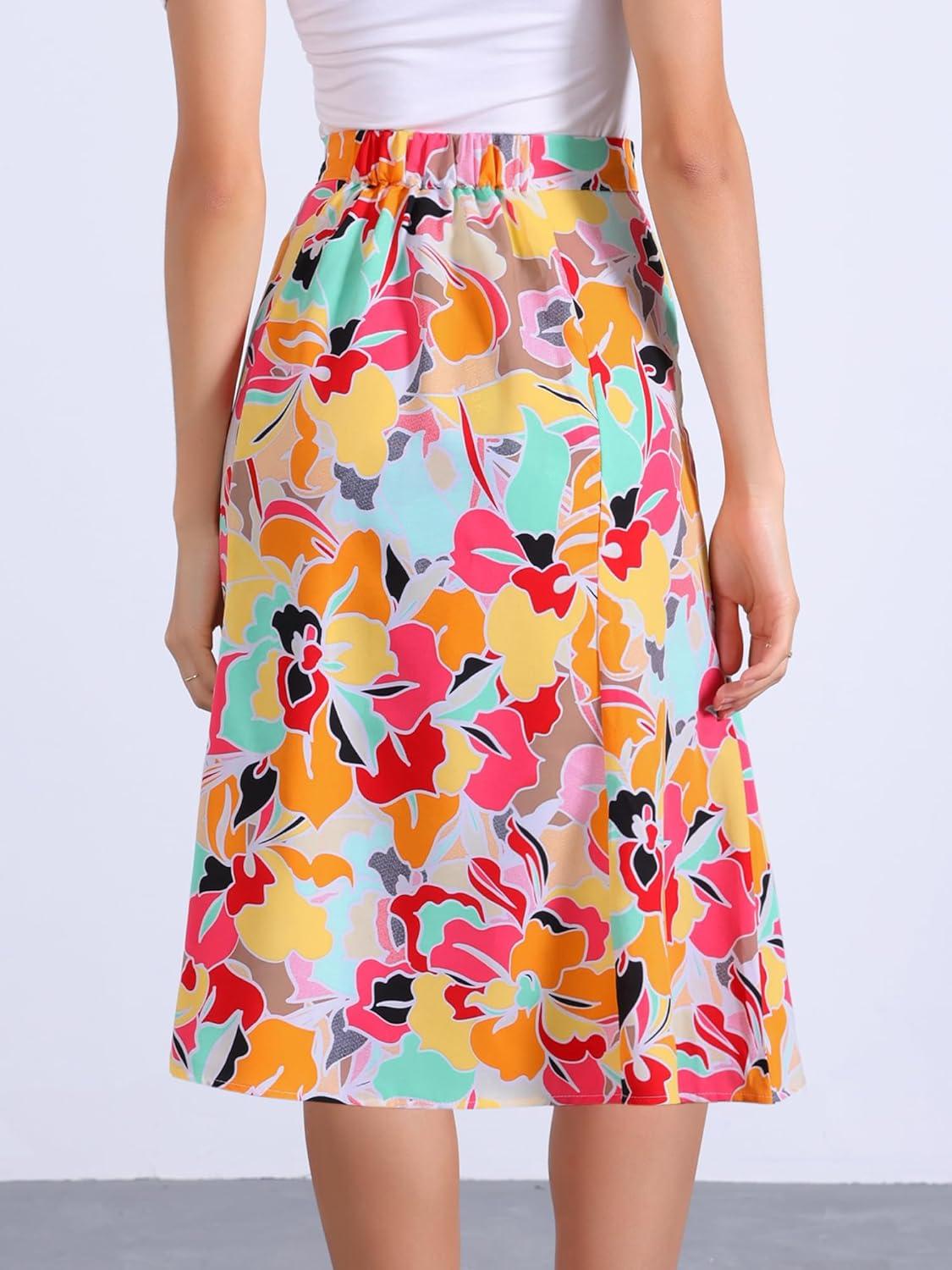 Allegra K Women's Floral Midi Skirt Peasant Elastic Waist A-Line Ditsy Leave Print Skirts(Abstract Floral)