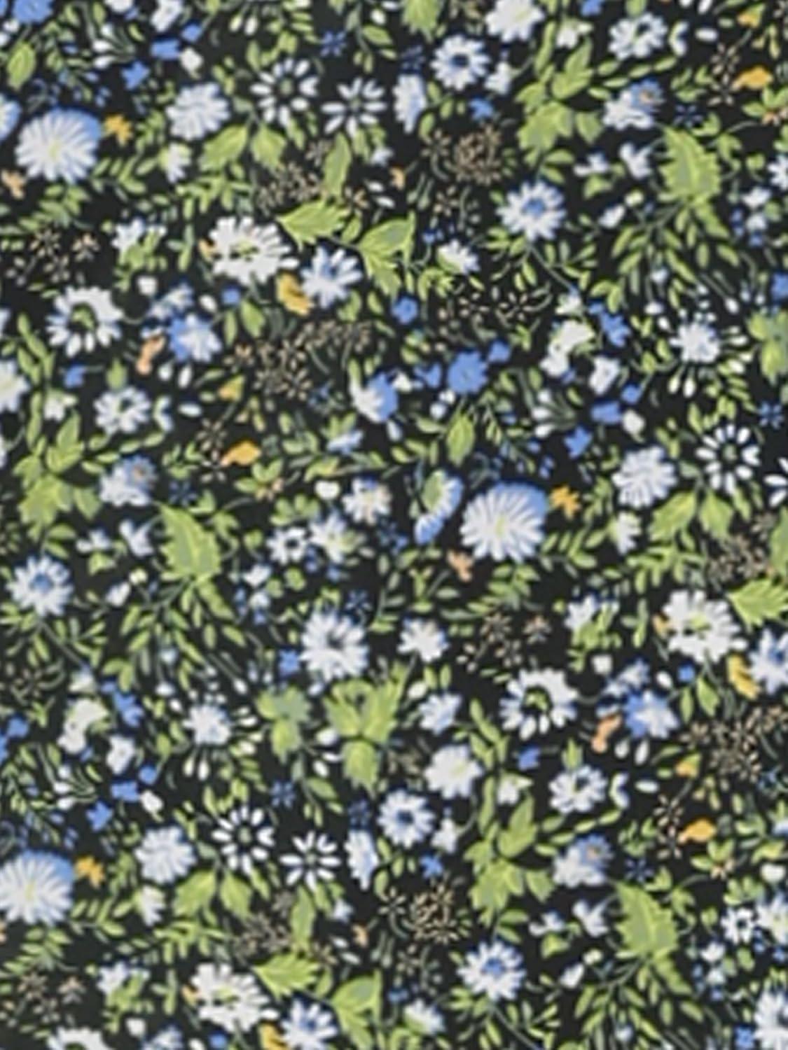 Allegra K Women’s Floral Midi Skirt Peasant Elastic Waist A-Line Ditsy Leave Print Skirts(Black Blue)