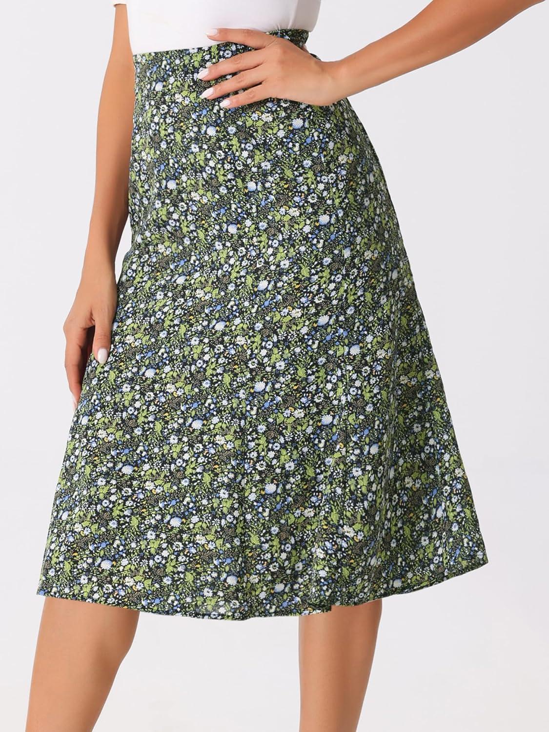 Don’t miss out on our limited-time offer: buy Allegra K Women’s Floral Midi Skirt Peasant Elastic Waist A-Line Ditsy Leave Print Skirts(Black Green), get {accessory} free!