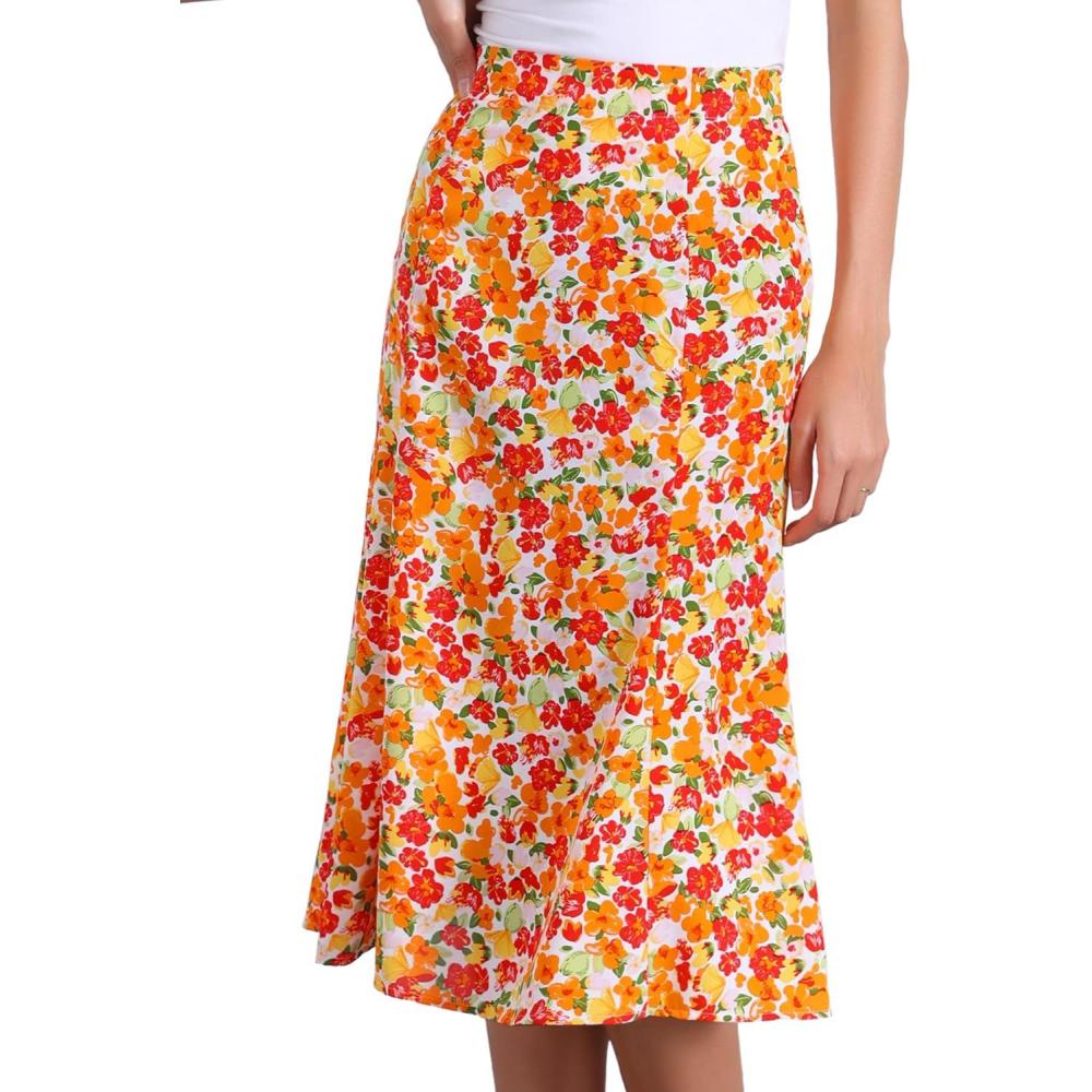 imageAllegra K Womens Floral Midi Skirt Peasant Elastic Waist ALine Ditsy Leave Print SkirtsOrange Green