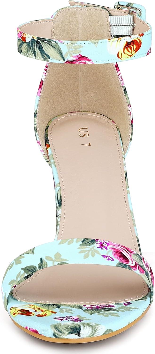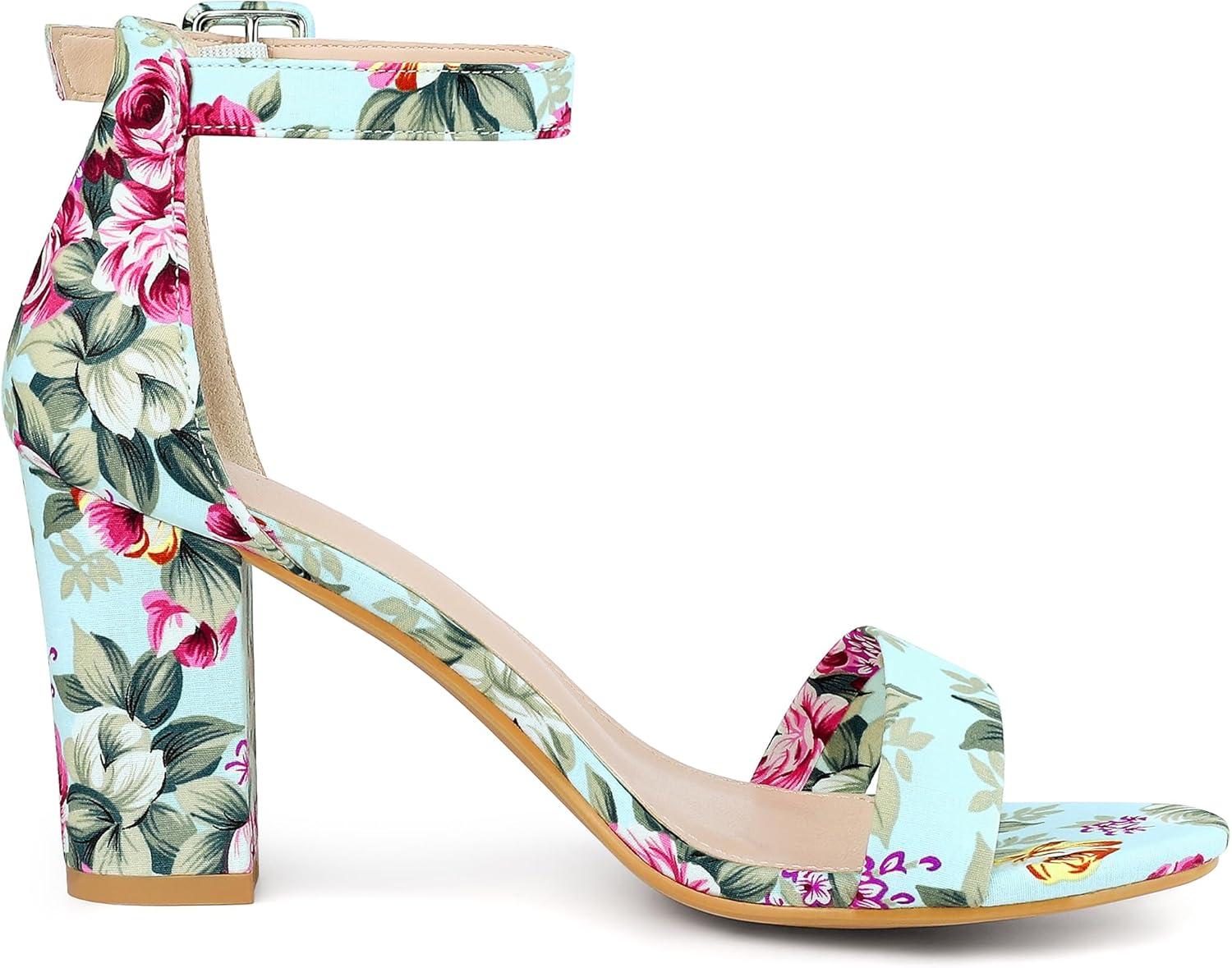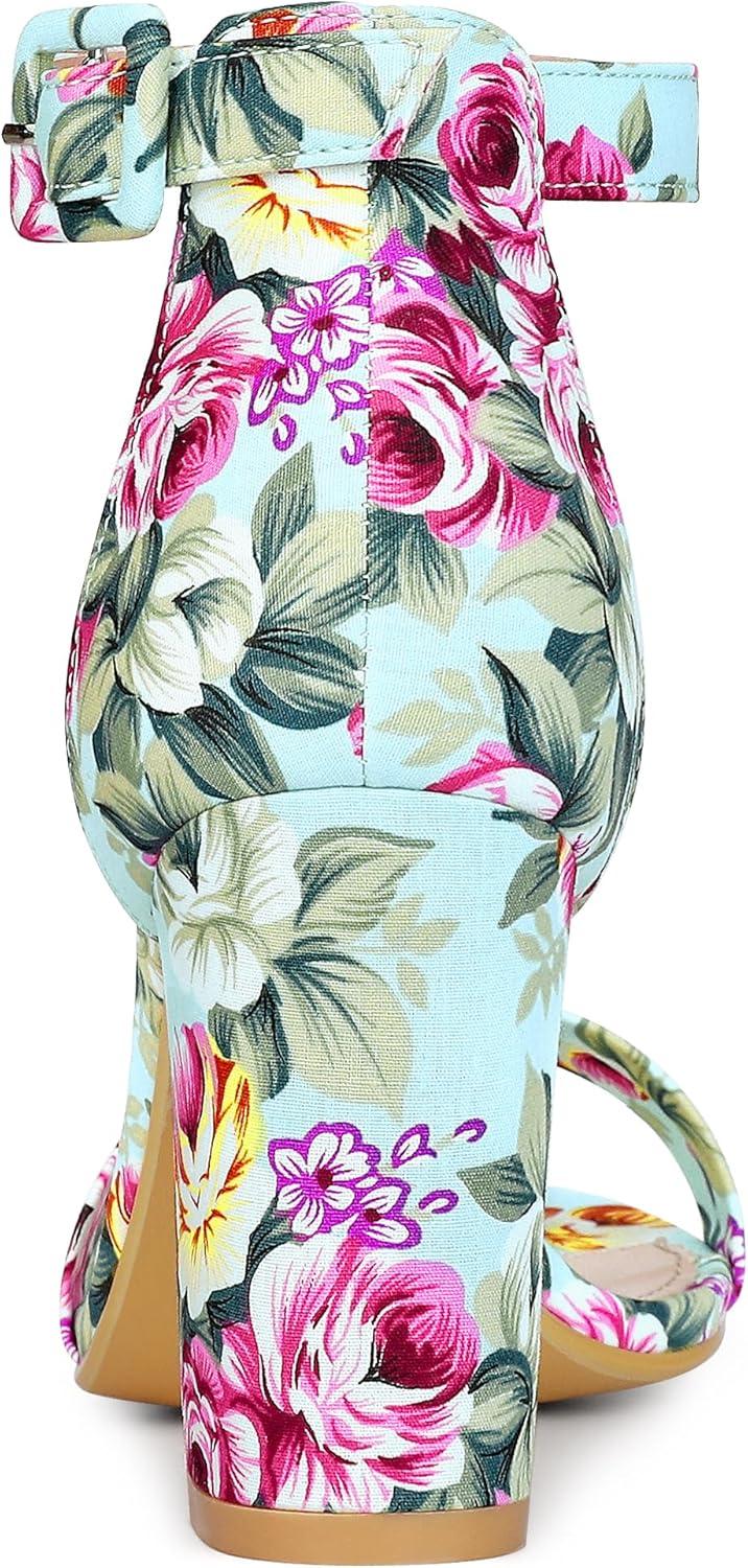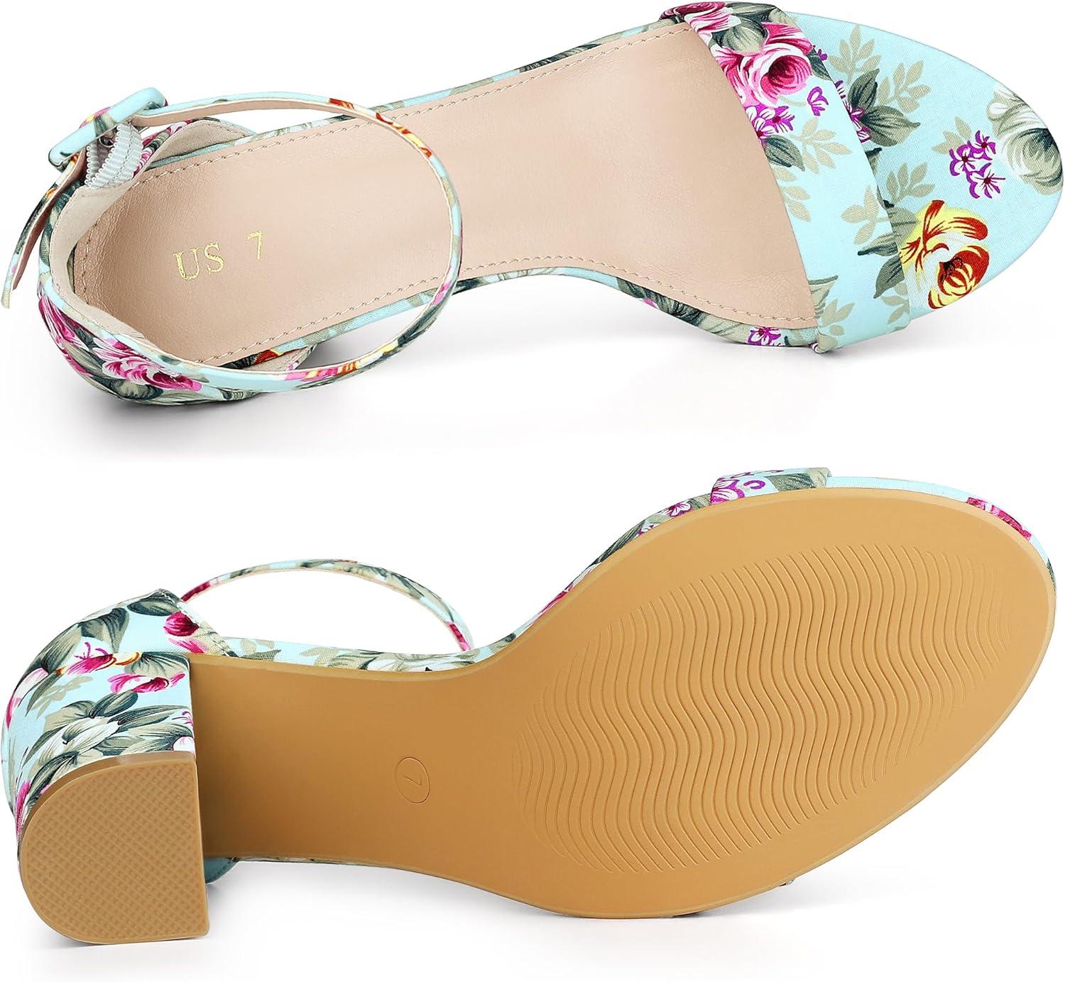 Allegra K Women’s Floral Print Open Toe Block High Heels Summer Sandals(Mint Green)