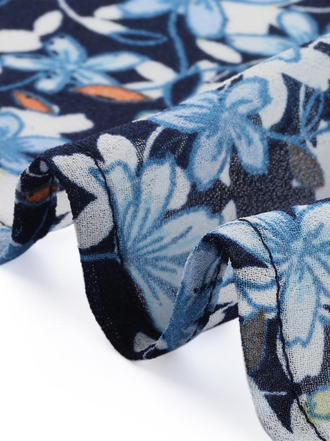 Allegra K Women's Floral Skirts Summer Chiffon Smocked Elastic Waist A-Line Below Knee Length Ruffle Tiered Skirt(Navy)