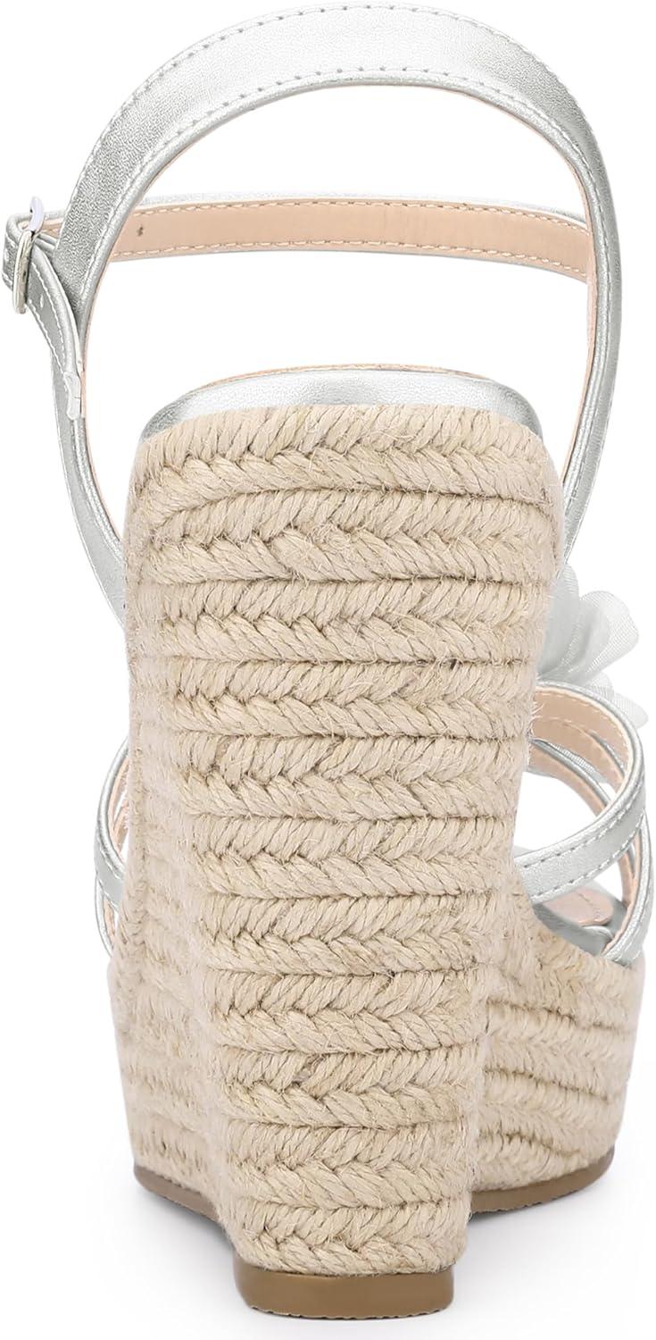 Allegra K Women’s Flower Platform Espadrilles Wedge Heel Sandals(Silver)