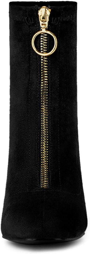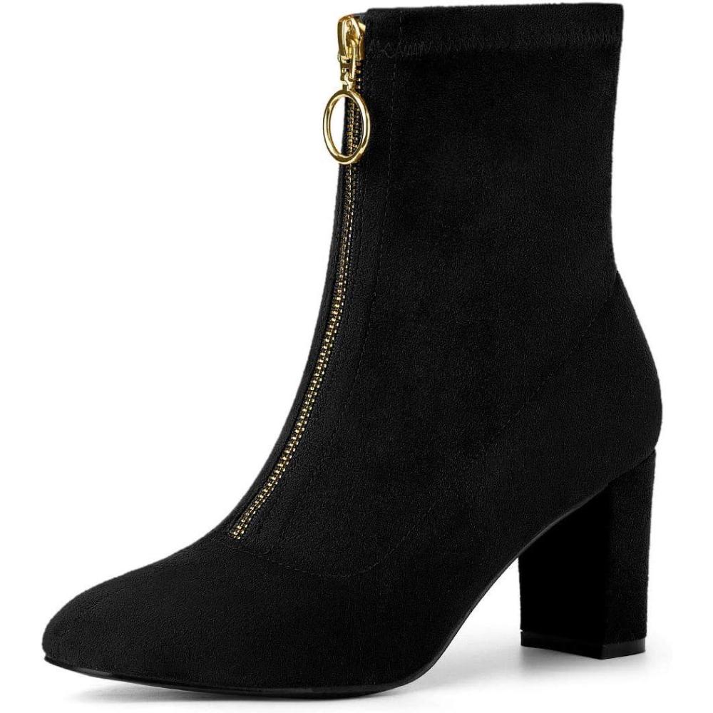Allegra K Women’s Front Zipper Chunky High Heel Ankle Boots(Black)