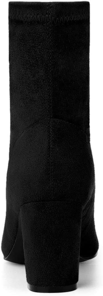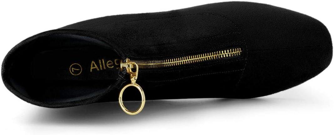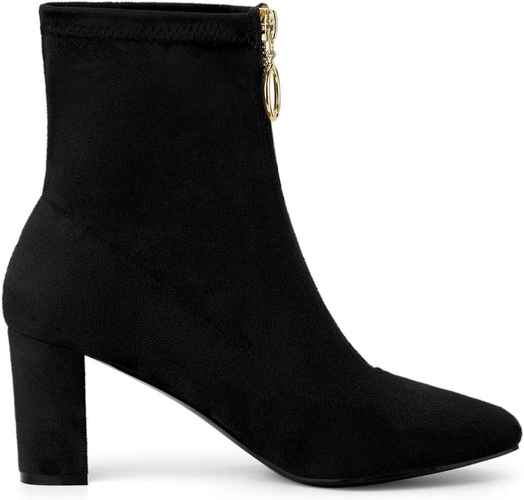 Allegra K Women's Front Zipper Chunky High Heel Ankle Boots(Black)
