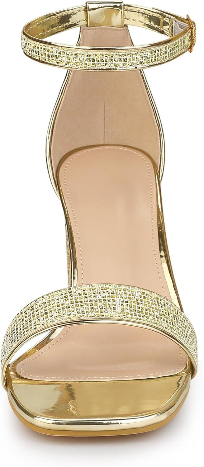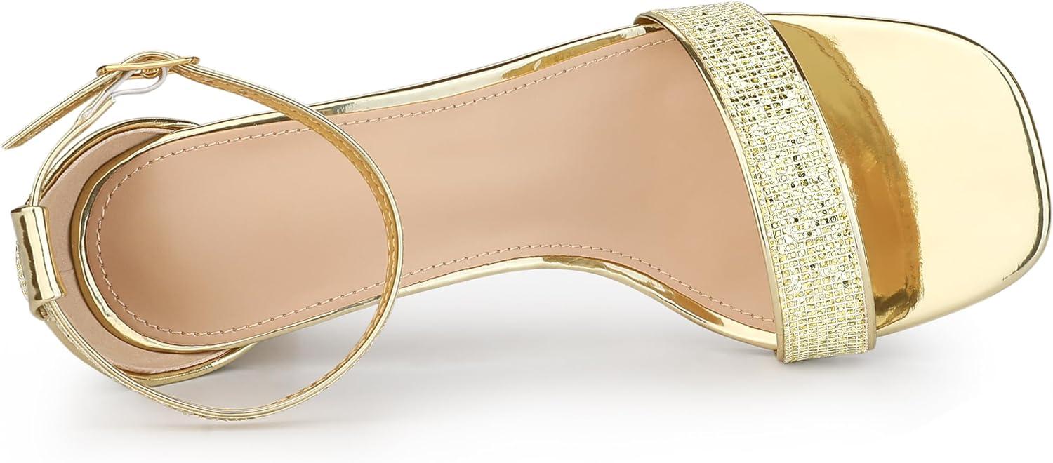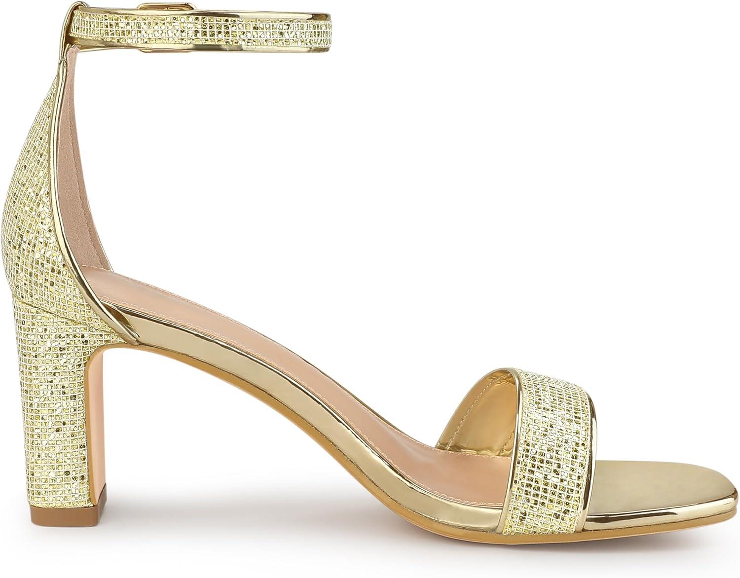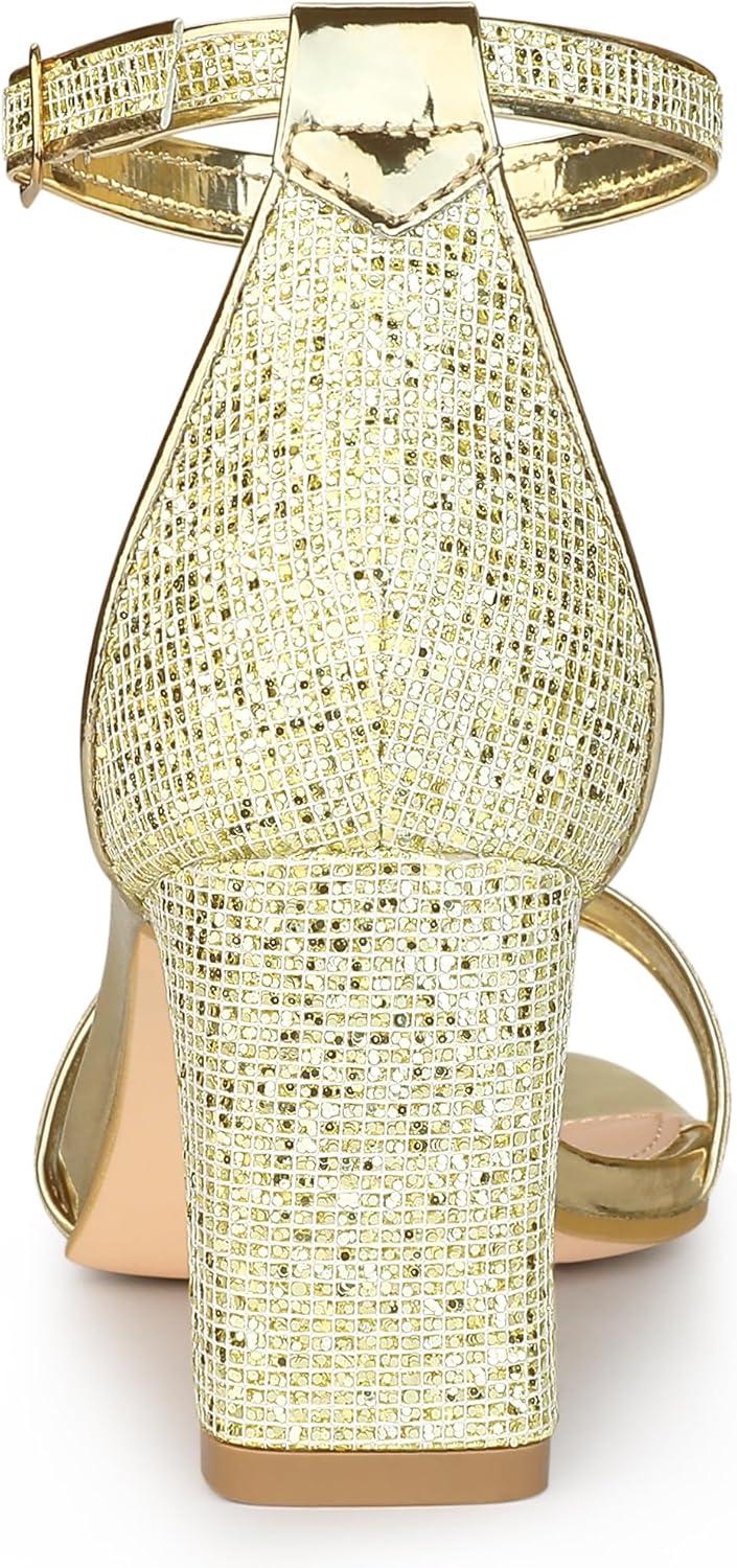 Allegra K Women’s Glitter Ankle Strap Chunky Heeled Sandals(Gold)