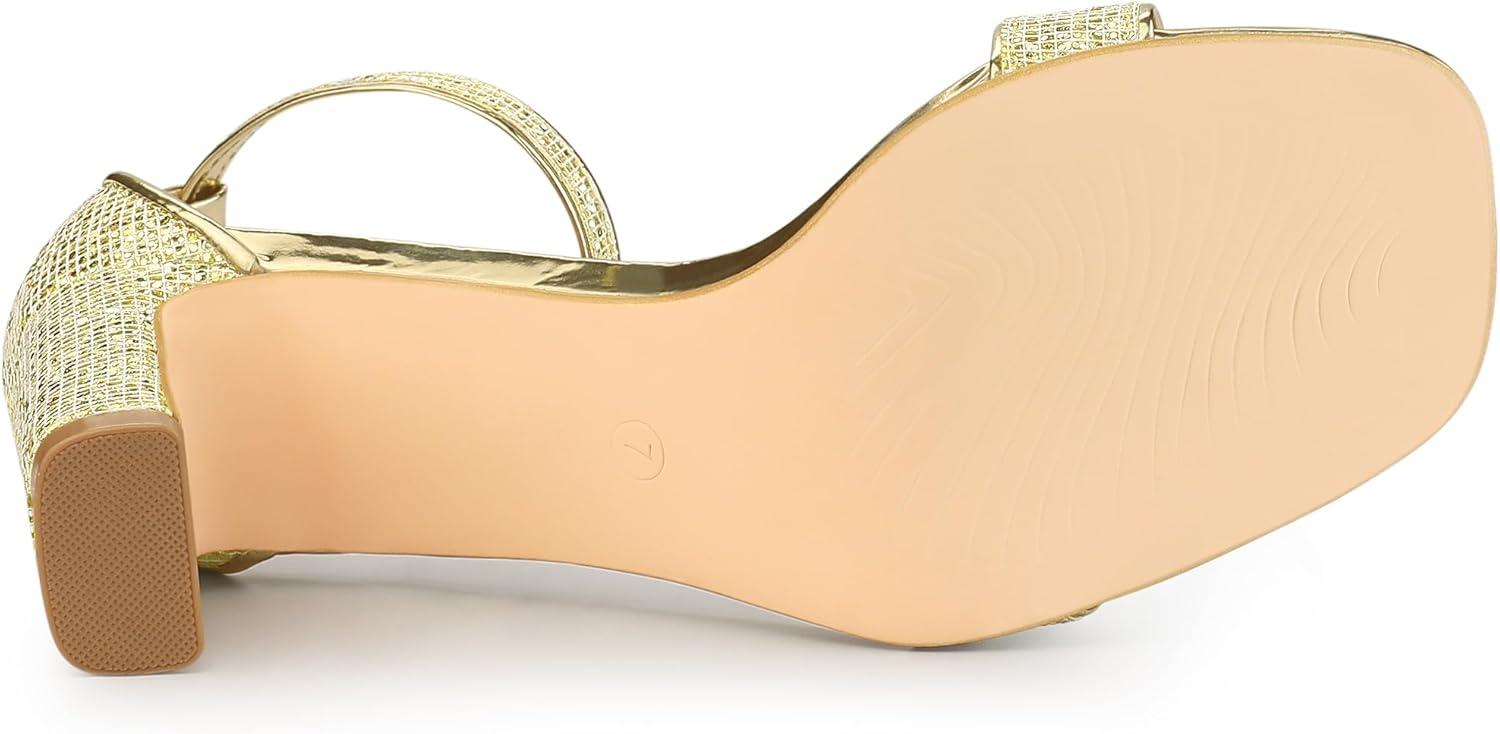 Allegra K Women's Glitter Ankle Strap Chunky Heeled Sandals