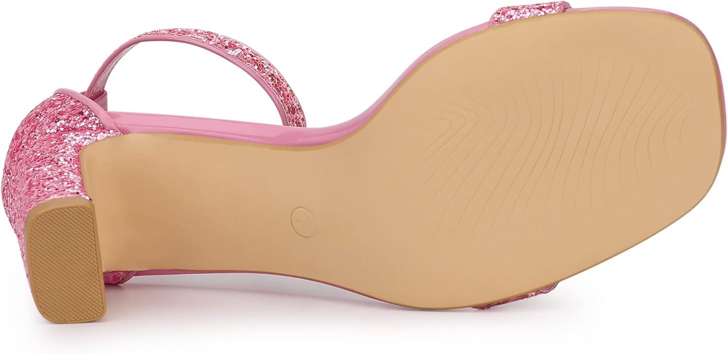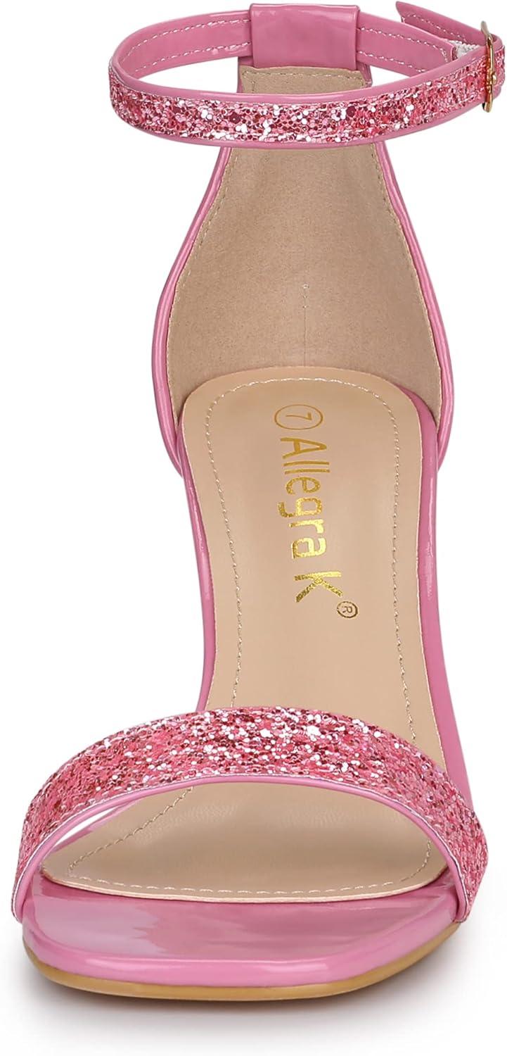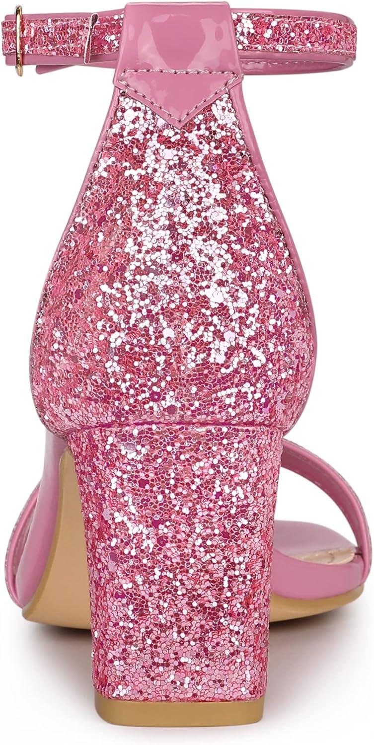 Allegra K Women’s Glitter Ankle Strap Chunky Heeled Sandals(Pink)