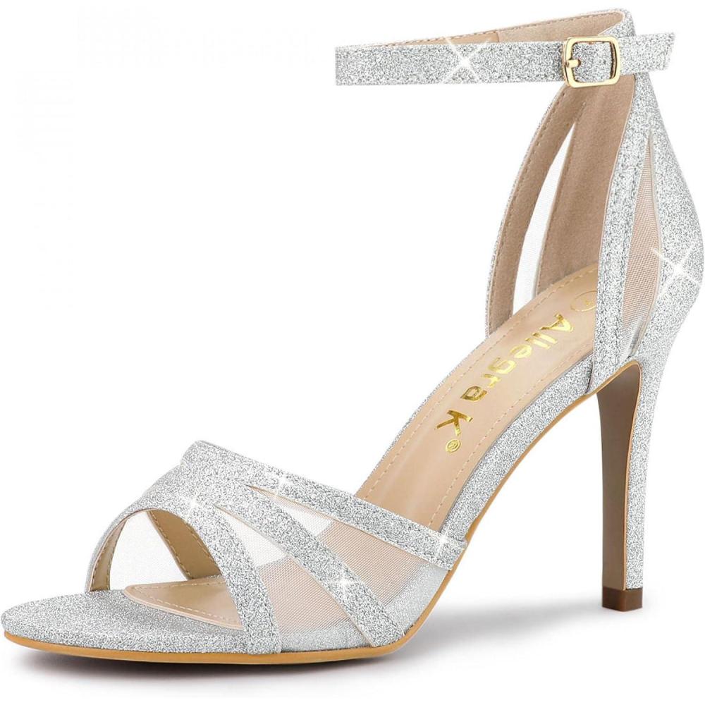 Allegra K Women’s Glitter Ankle Strap Stiletto Heels Sandals(Silver)
