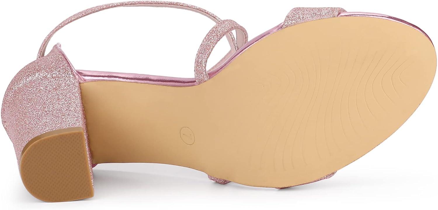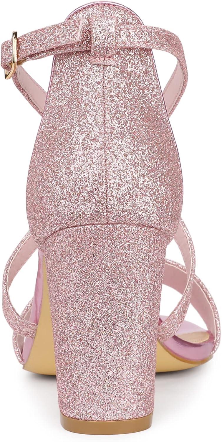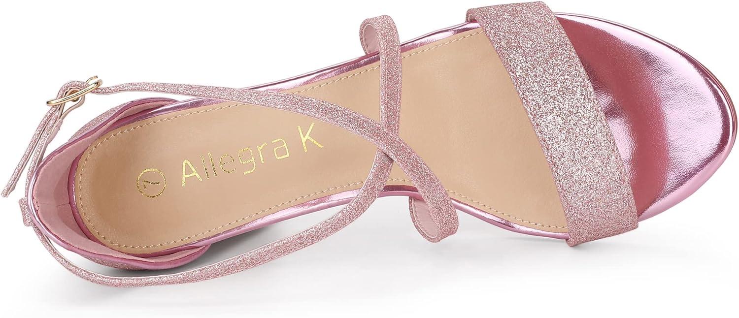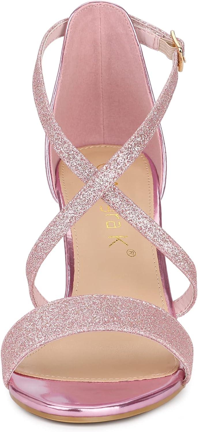Allegra K Women’s Glitter Crisscross Strap Block Heels Sandals(Pink)