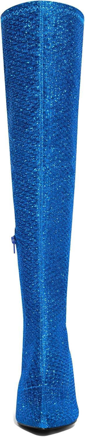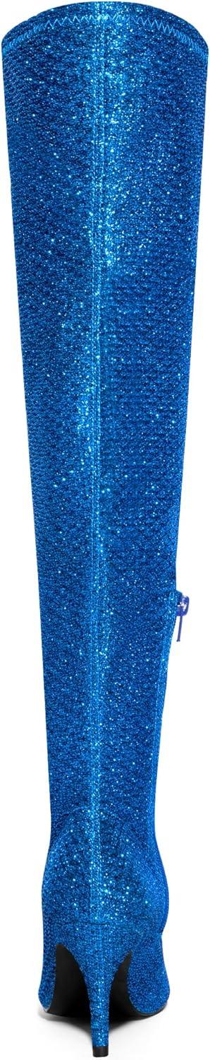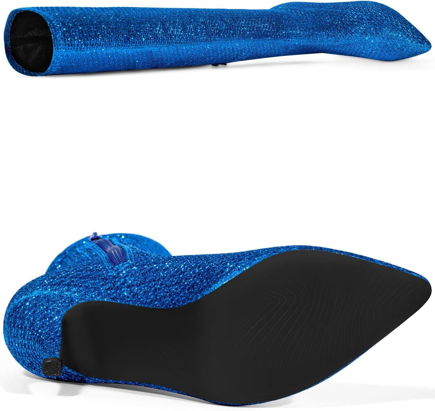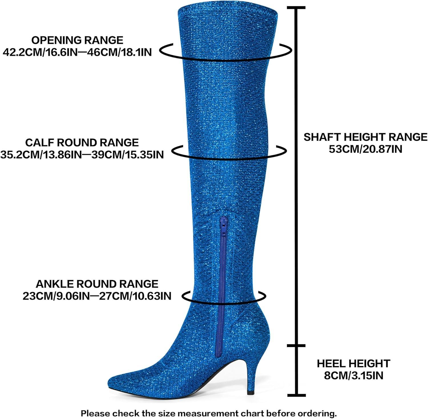 Allegra K Women’s Glitter Pointed Toe Stiletto Heels Over the Knee High Boots(Royal Blue)