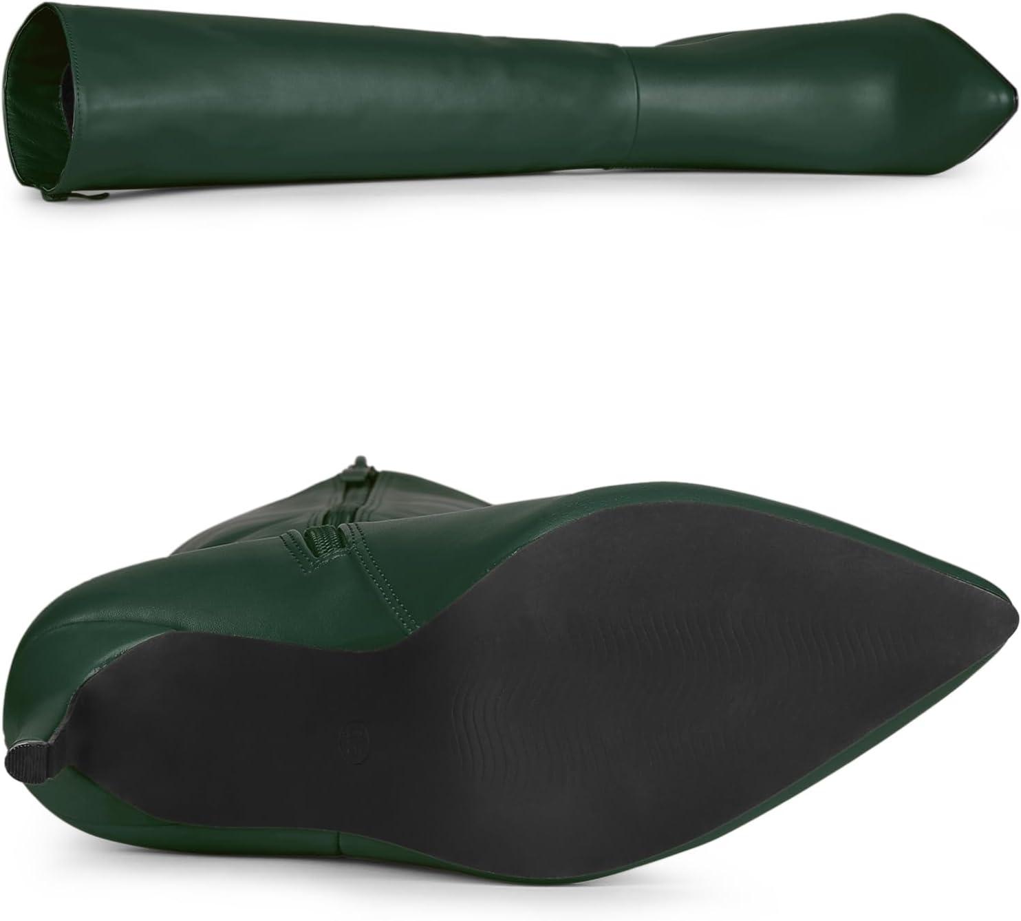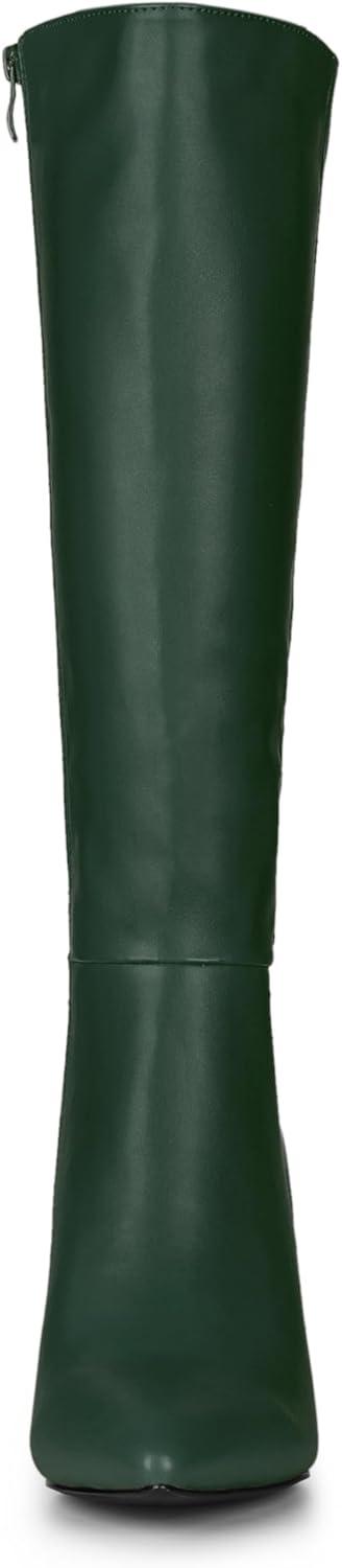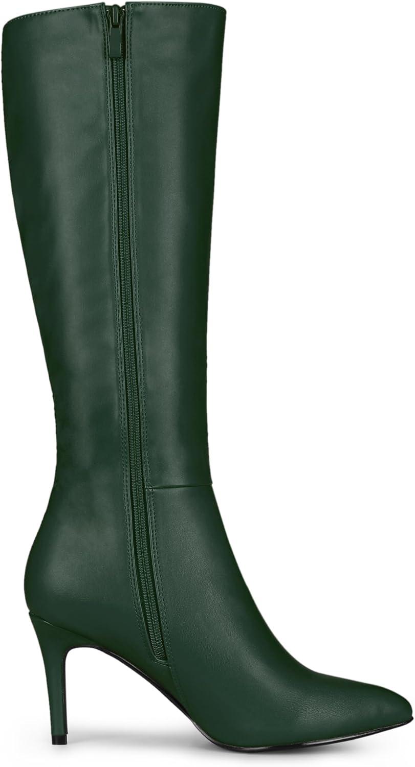 Allegra K Women’s High Heels Pointed Toe Stiletto Heel Knee High Boots(Dark Green)