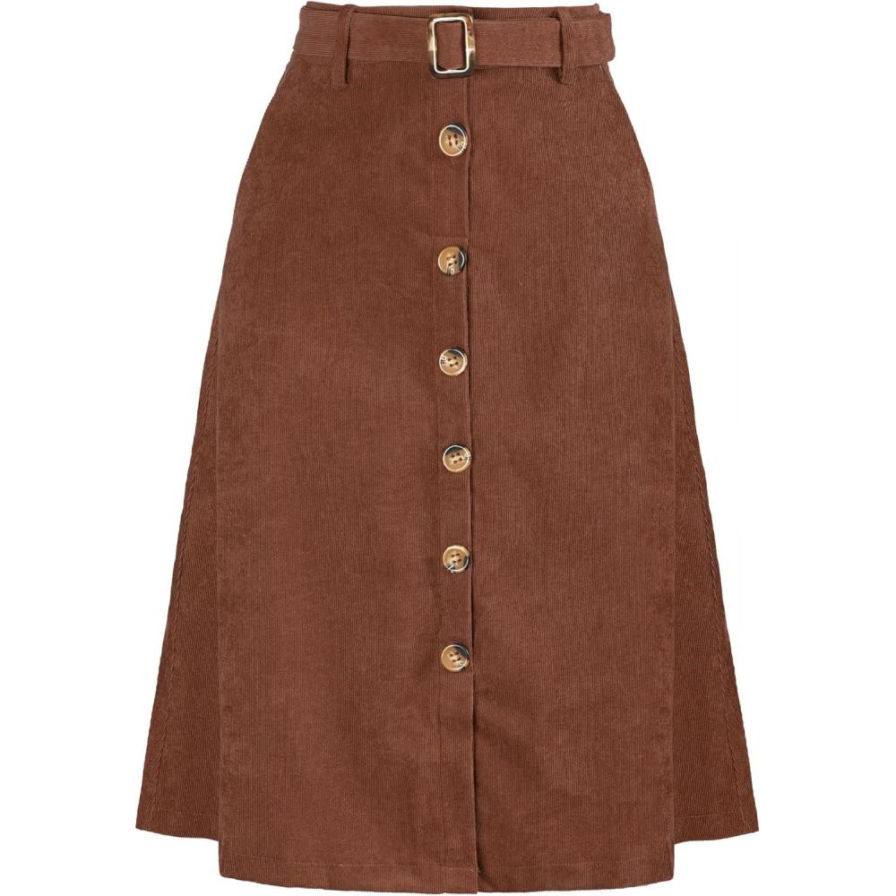 imageAllegra K Womens High Waist Button Front ALine Belted Corduroy Midi SkirtDark Brown