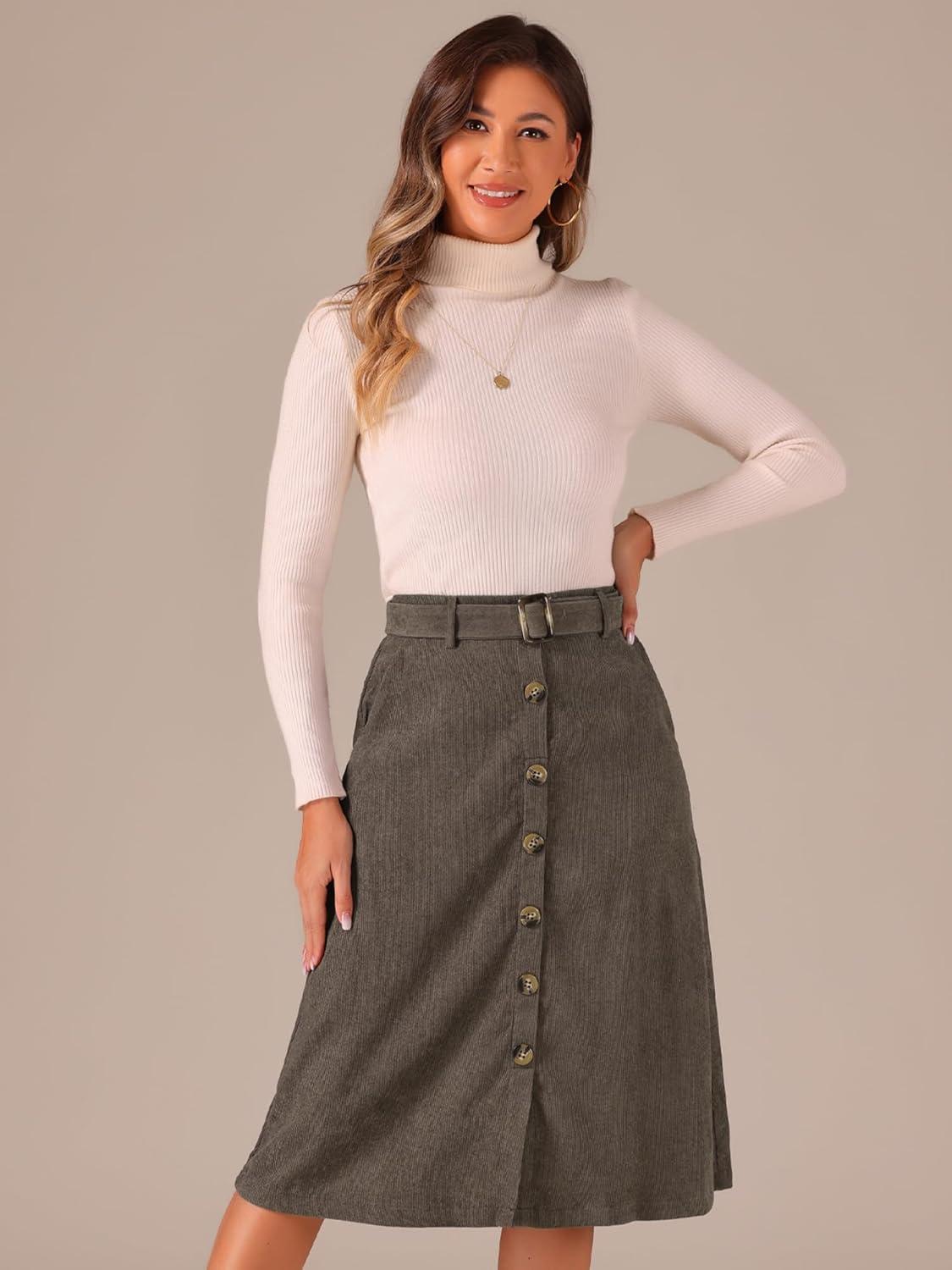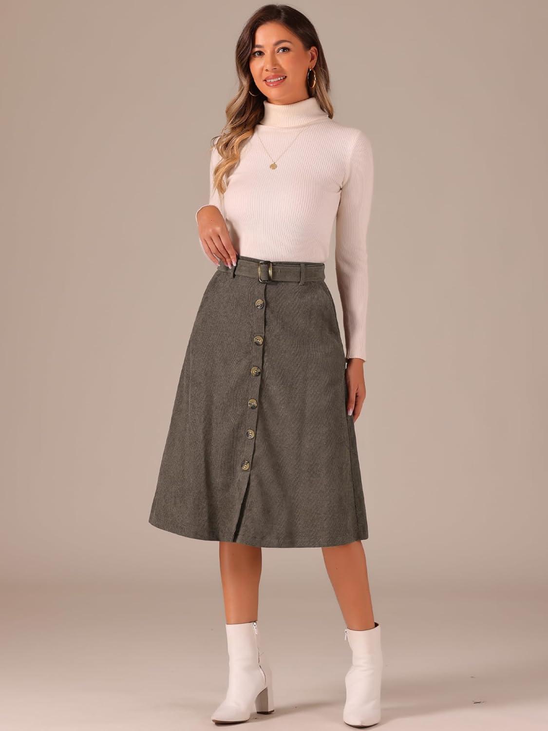 Get the Allegra K Womens High Waist Button Front A-Line Belted Corduroy Midi Skirt(Gray Brown) you want at a price you can afford with our markdown sale.