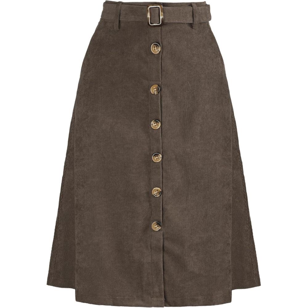 imageAllegra K Womens High Waist Button Front ALine Belted Corduroy Midi SkirtGray Brown