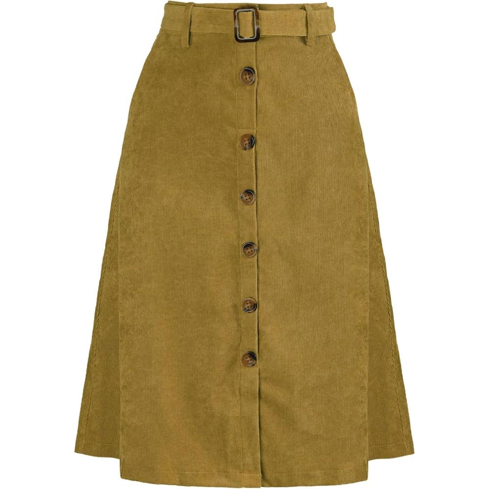 imageAllegra K Womens High Waist Button Front ALine Belted Corduroy Midi SkirtOlive Yellow