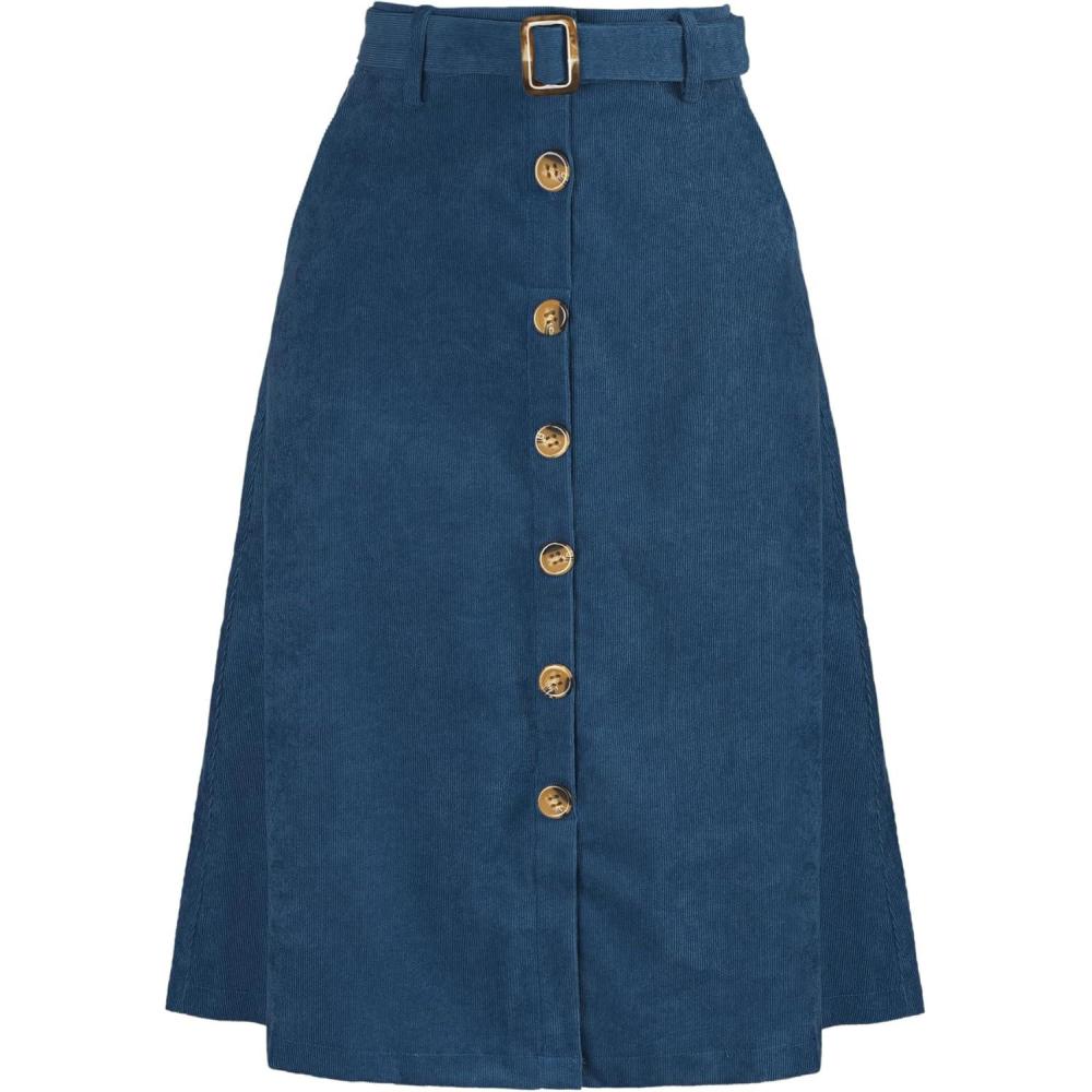 imageAllegra K Womens High Waist Button Front ALine Belted Corduroy Midi SkirtPeacock Blue