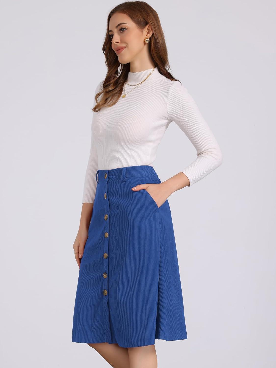 Don’t break the bank! Get the Allegra K Womens High Waist Button Front A-Line Belted Corduroy Midi Skirt(Royal Blue) you want at a price you can afford during our markdown sale.